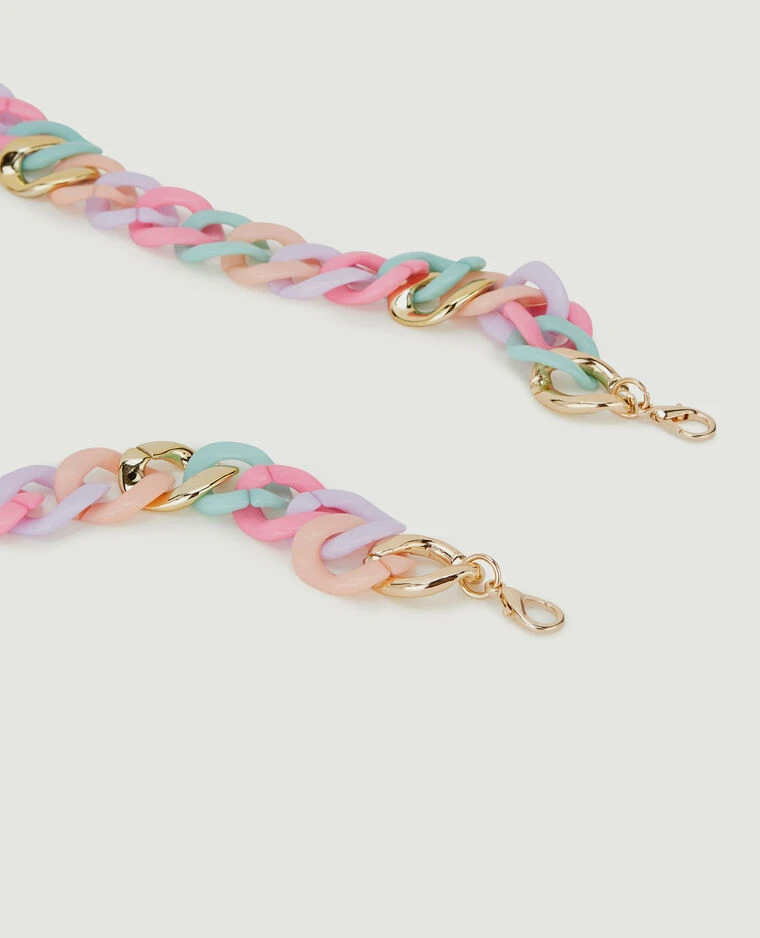 – Bandoulière grosse chaîne rose, lilas, orangé, vert aqua et doré.