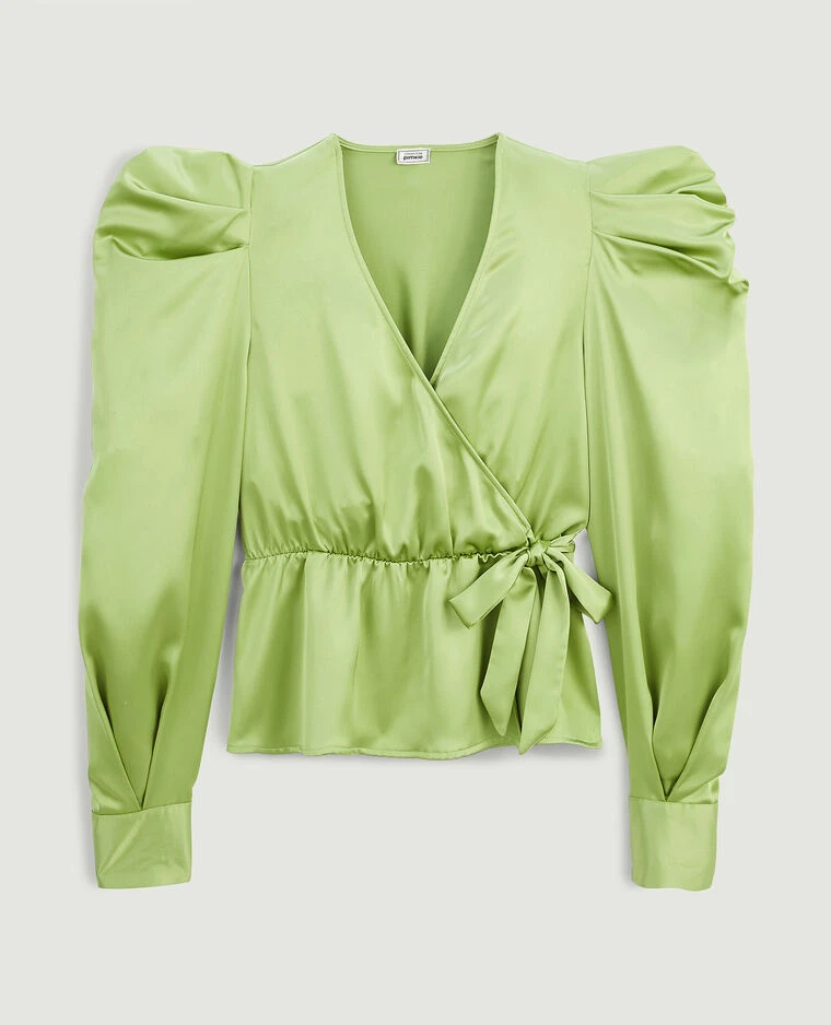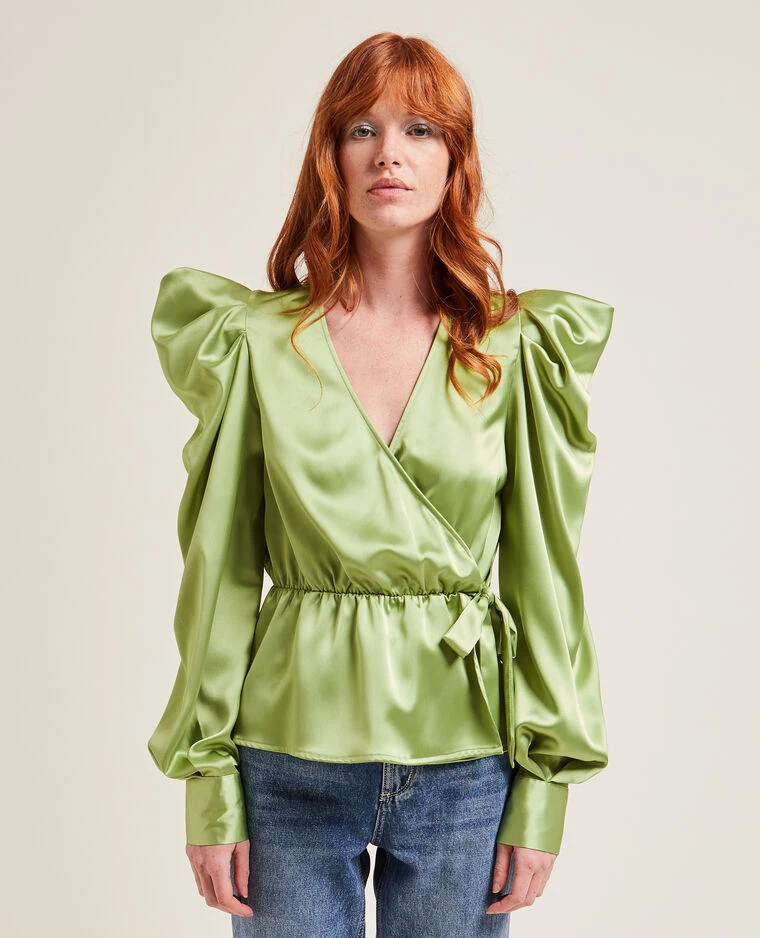 – Manches ballons avec poignets fermées par petits boutons tissu.