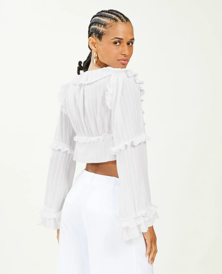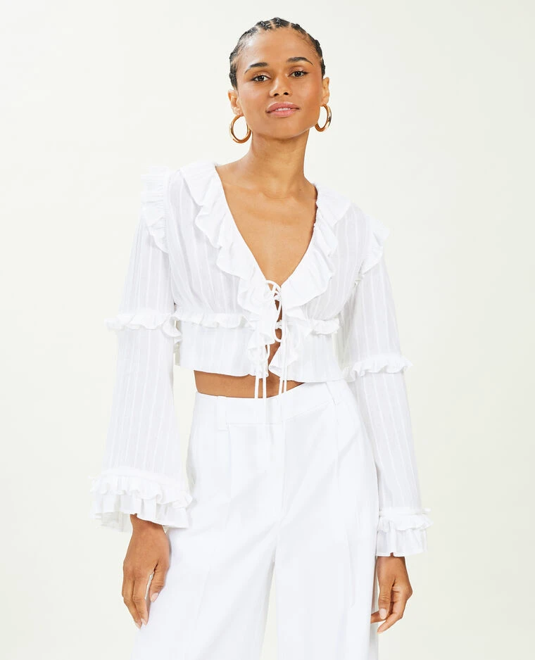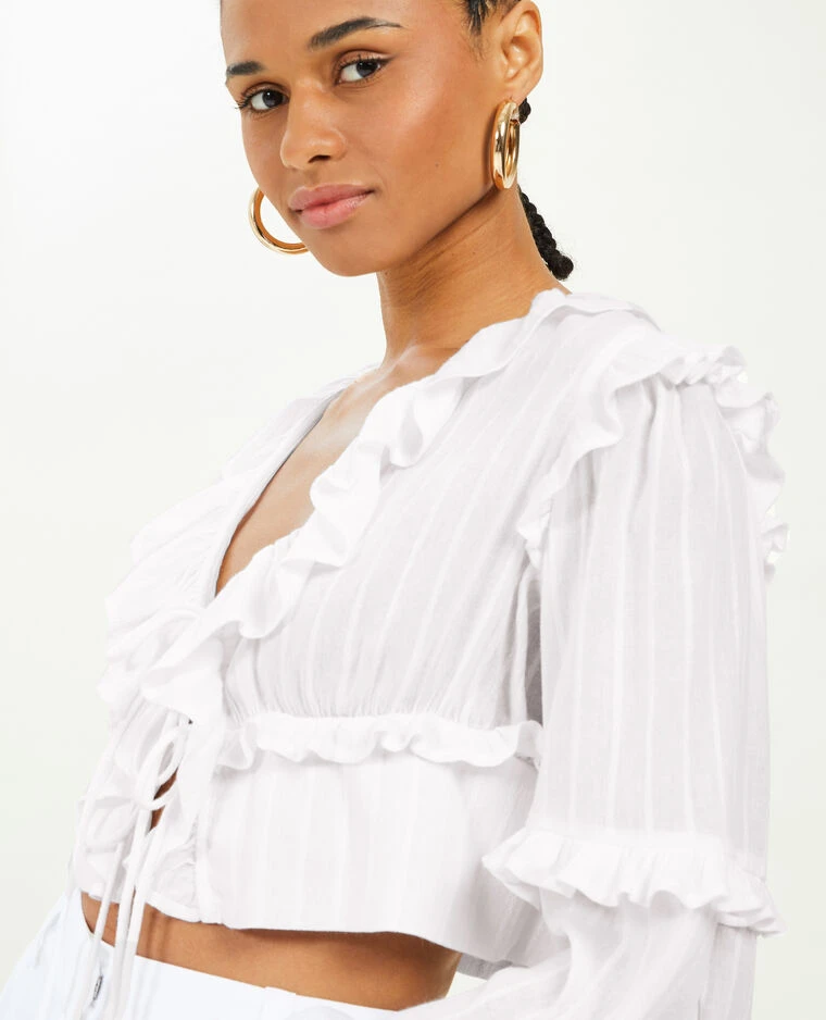 – Blouse courte en tissu blanc.