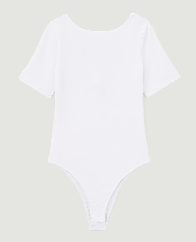 – Body blanc manches courtes en matière extensible.