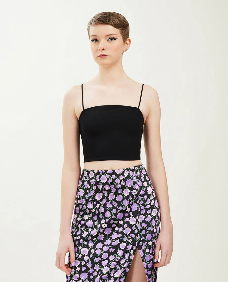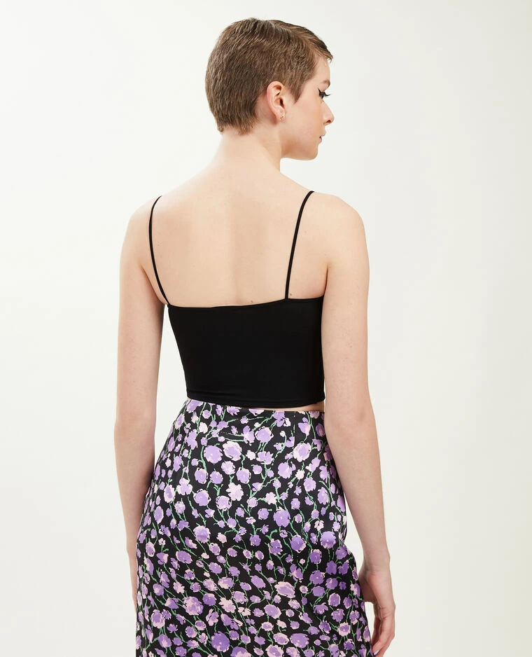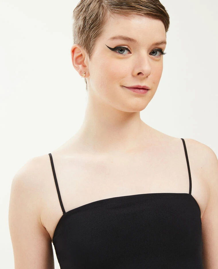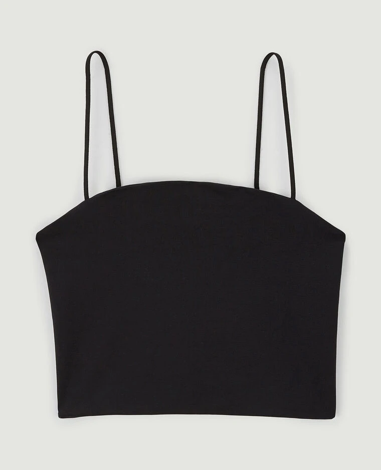 – Brassière bandeau noire avec fines bretelles élastiquées.