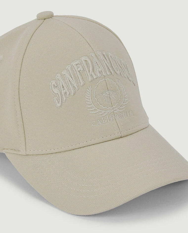 – Casquette semi-rigide en tissu beige avec broderie SAN FRANCISCO devant.