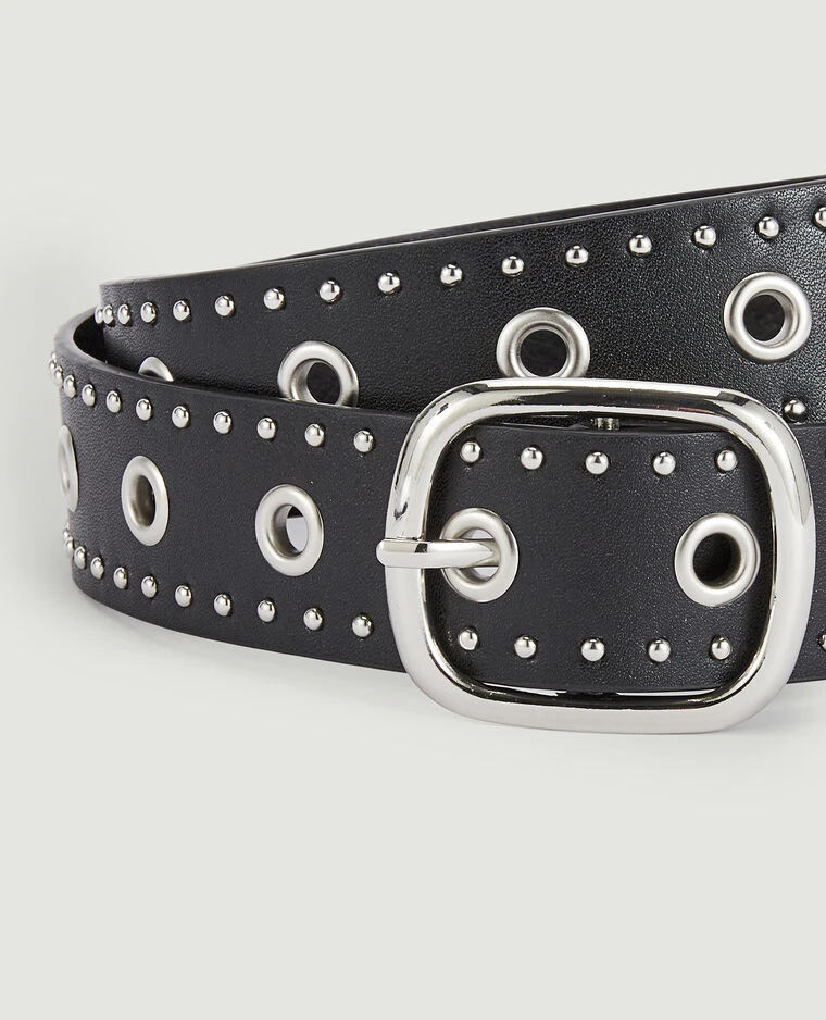 – Ceinture en matière synthétique effet cuir lisse noir.