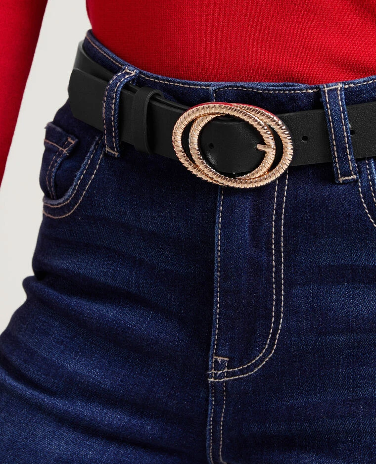 – Ceinture noire en matiĂšre synthĂ©tique effet cuir.