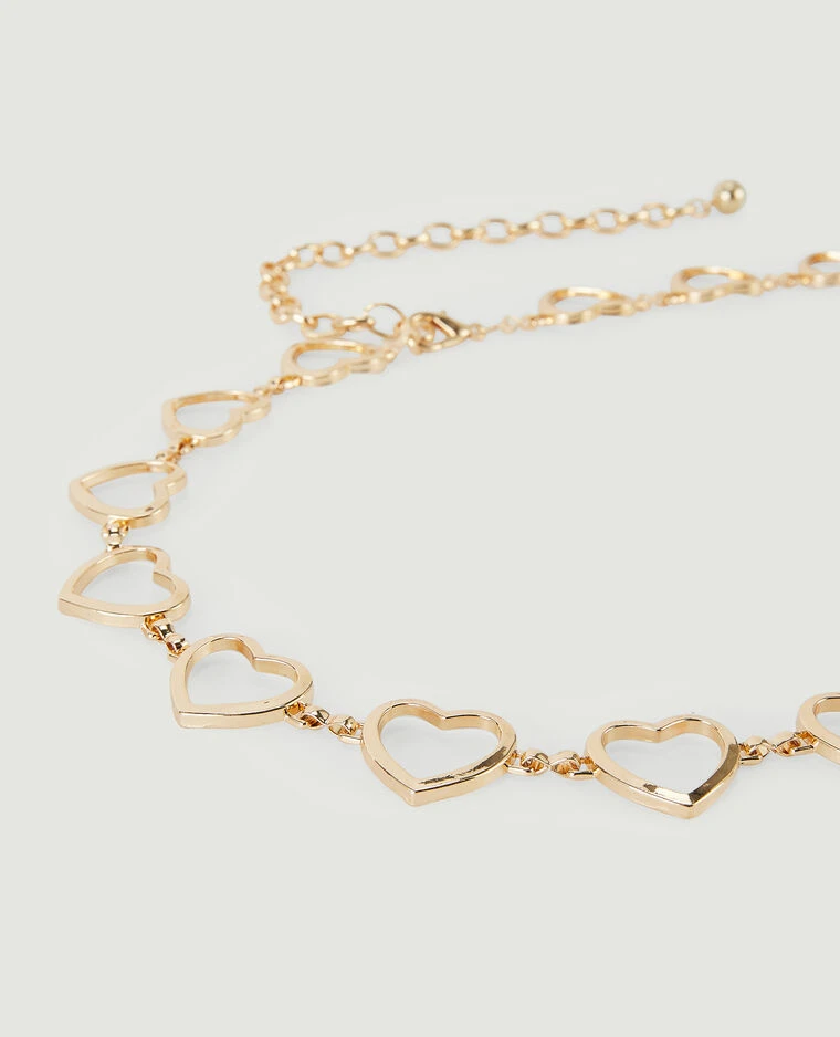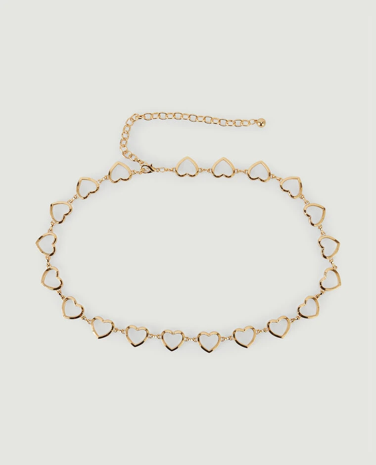 – Ceinture métallique couleur or avec cœurs.