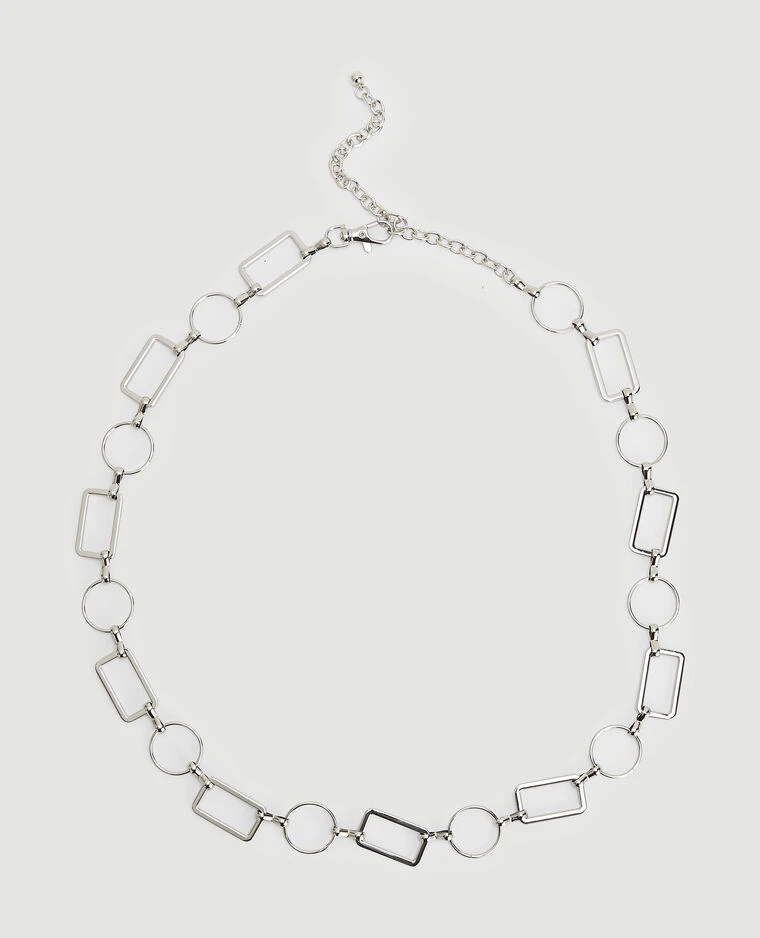– Ceinture métallique couleur argent ronds et rectangles.