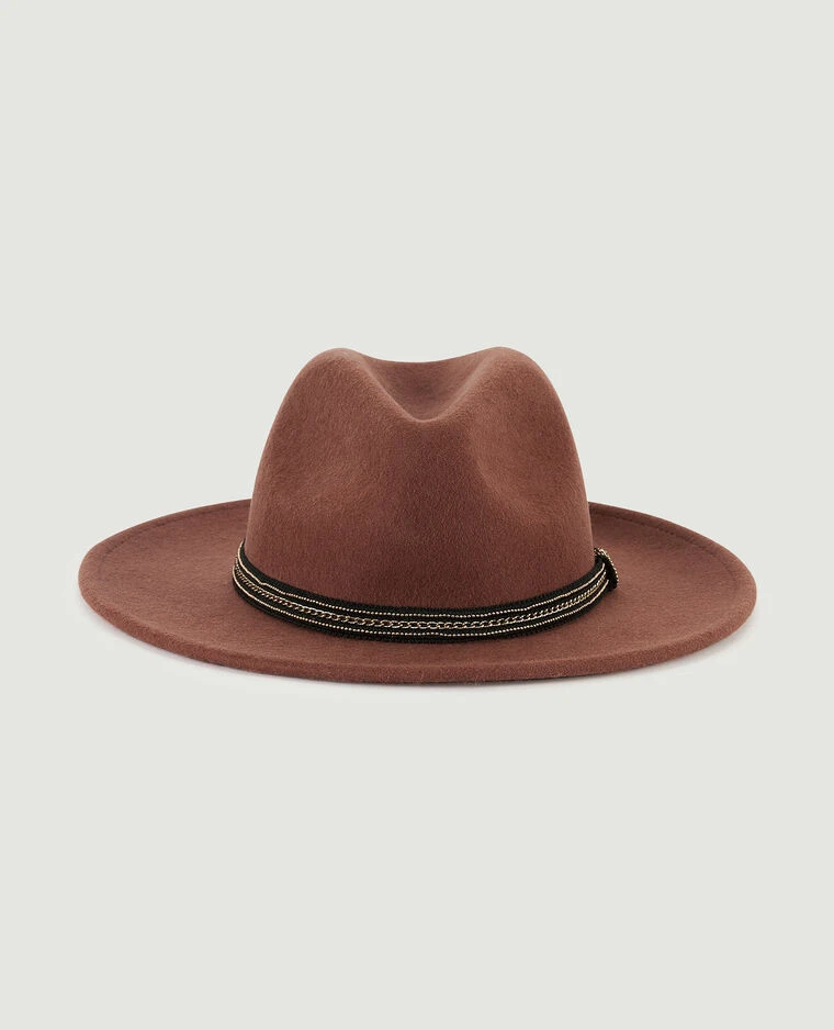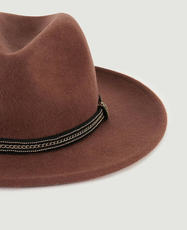 – Chapeau en feutre marron.