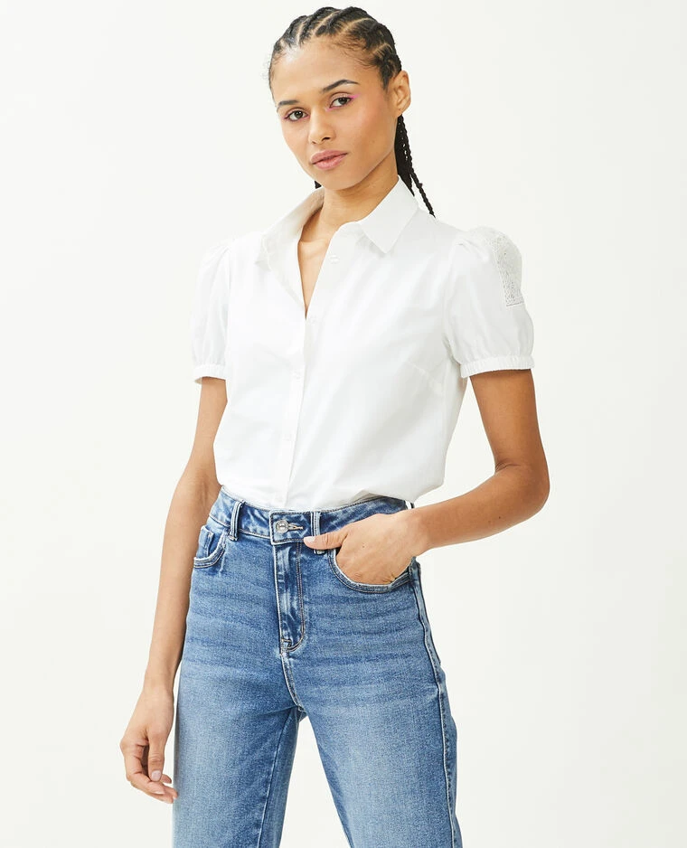 – Manches courtes avec empiècements dentelle et bords élastiqués.