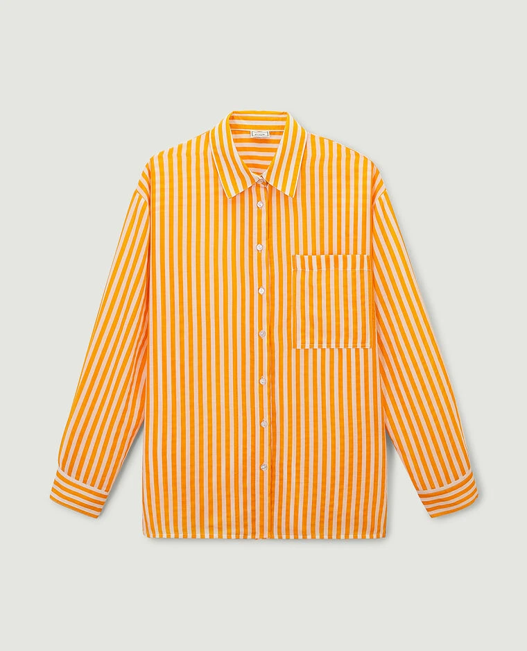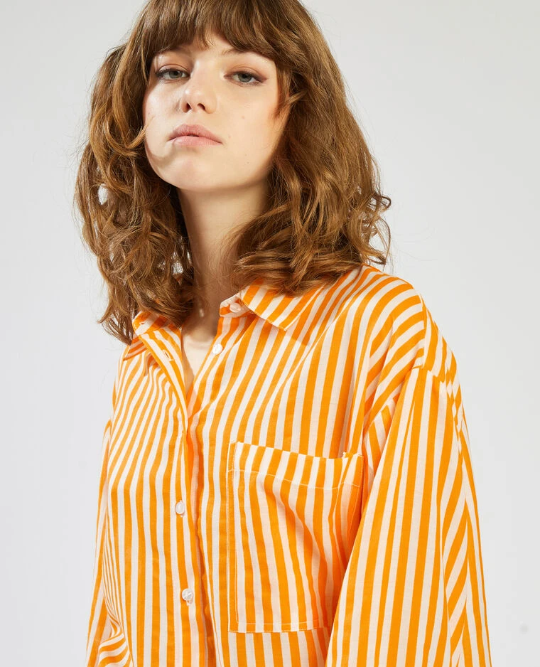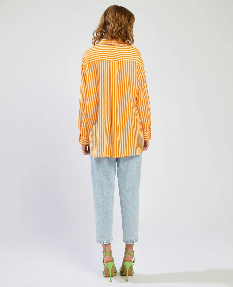 – Chemise fluide blanche à rayures orange.