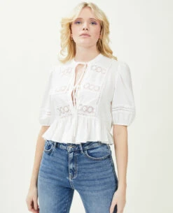 Ce chemisier contient 30% de polyester recyclé.