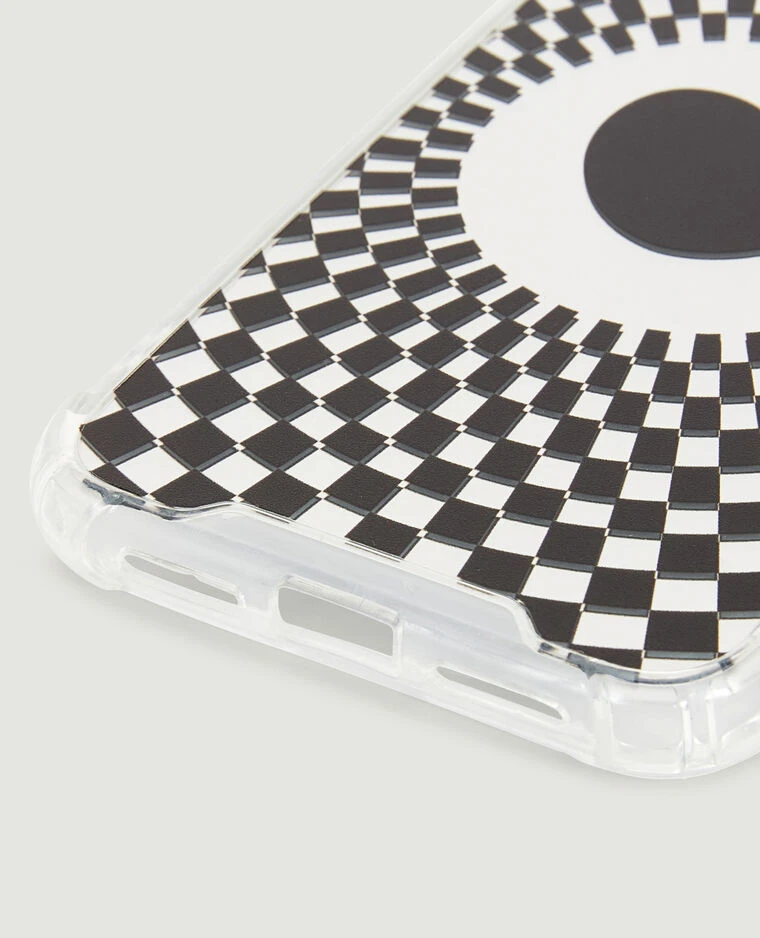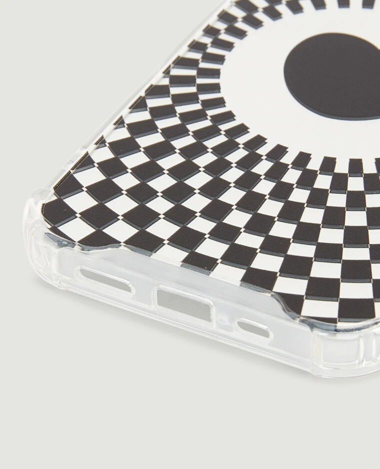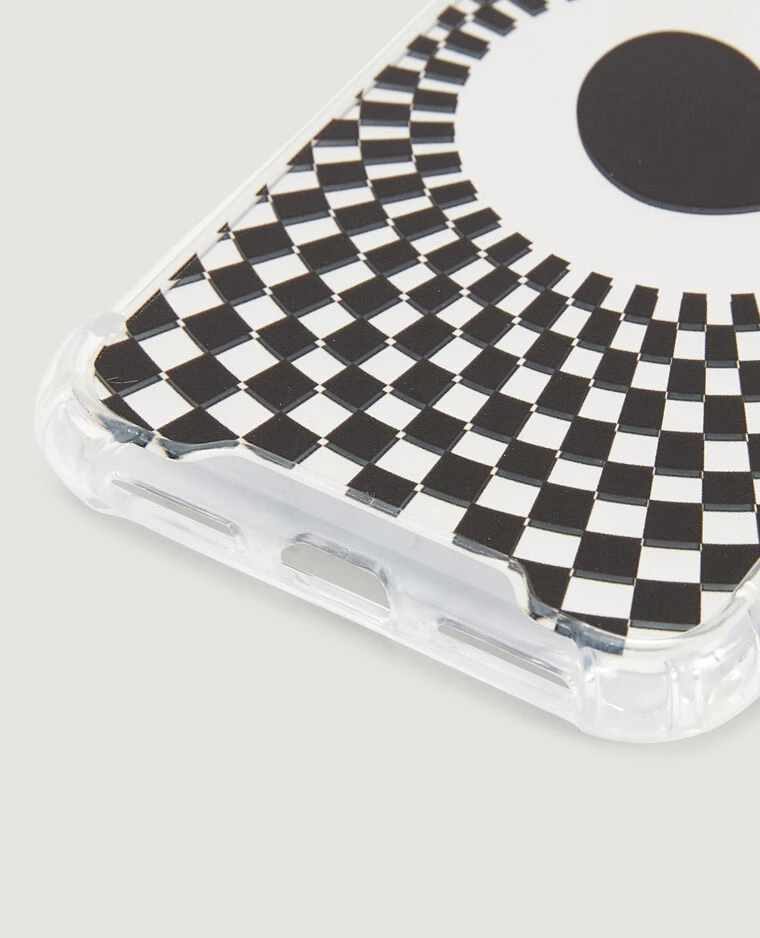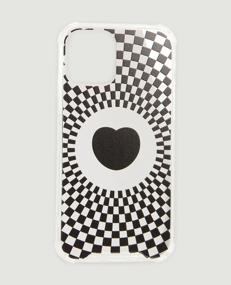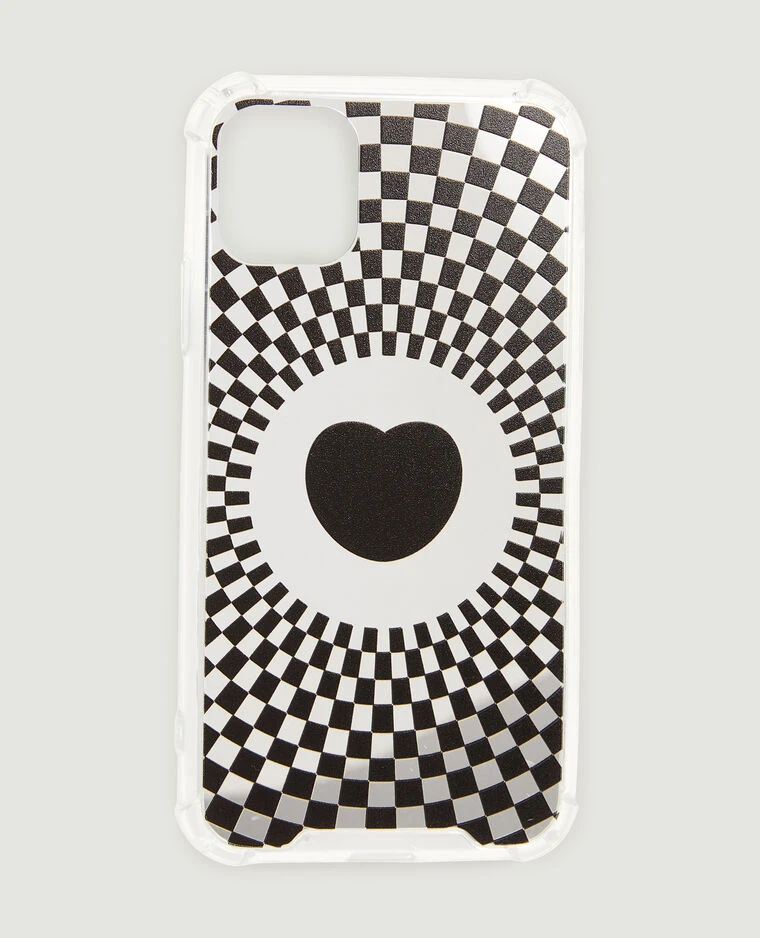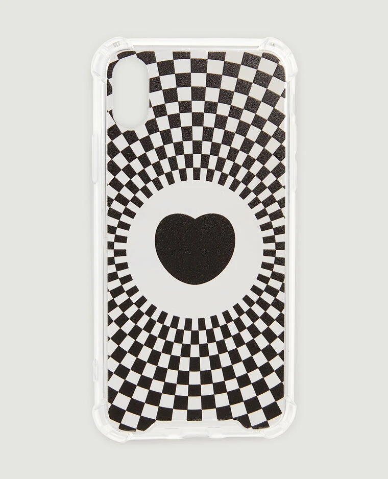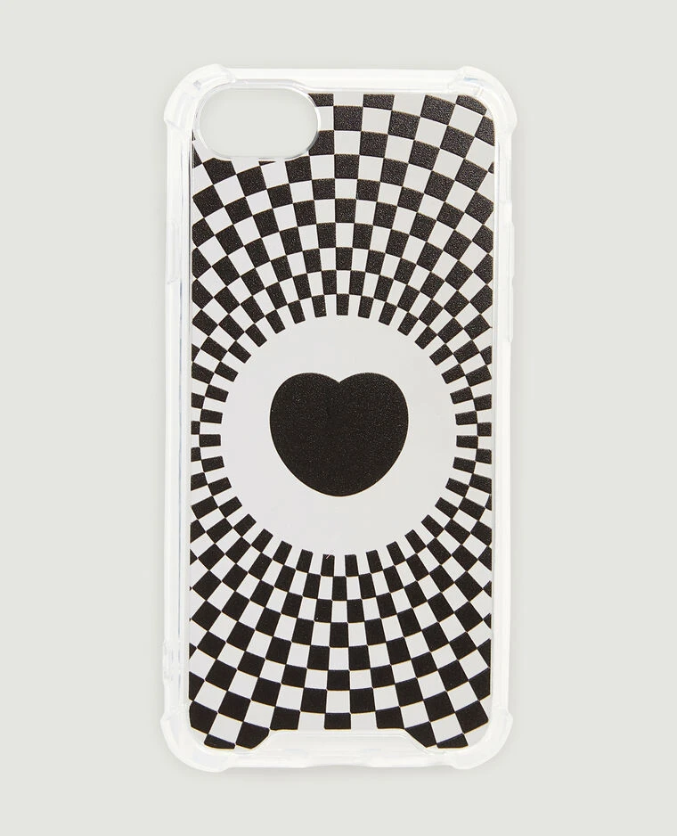 – Coque de téléphone motif cœur psychédélique noir et blanc.