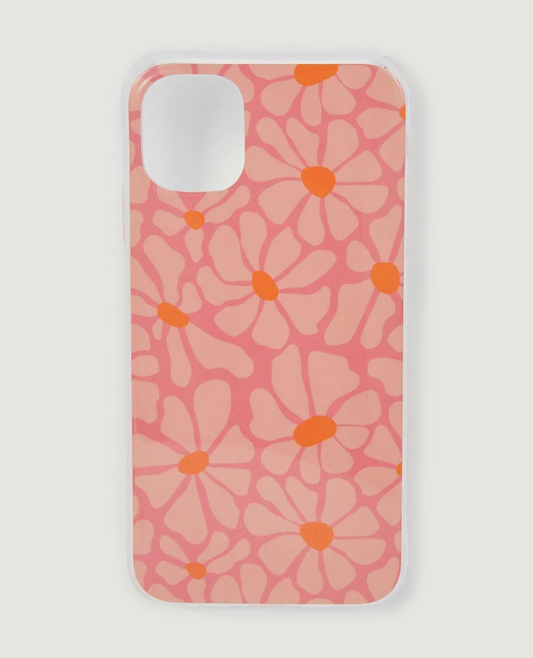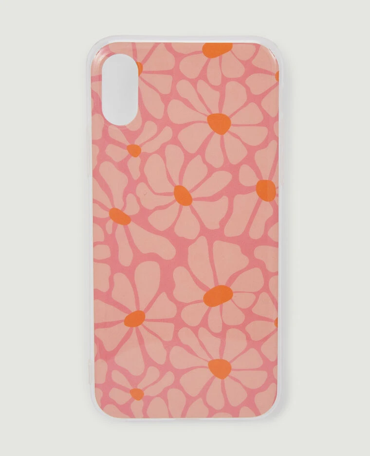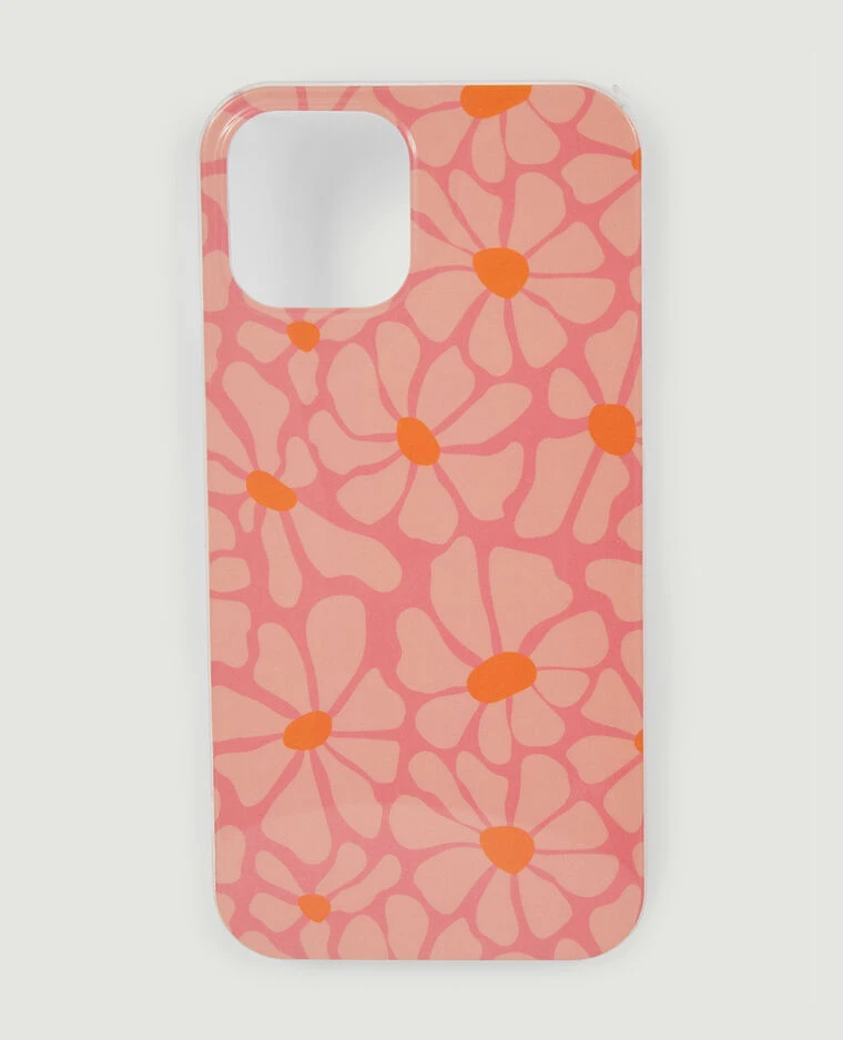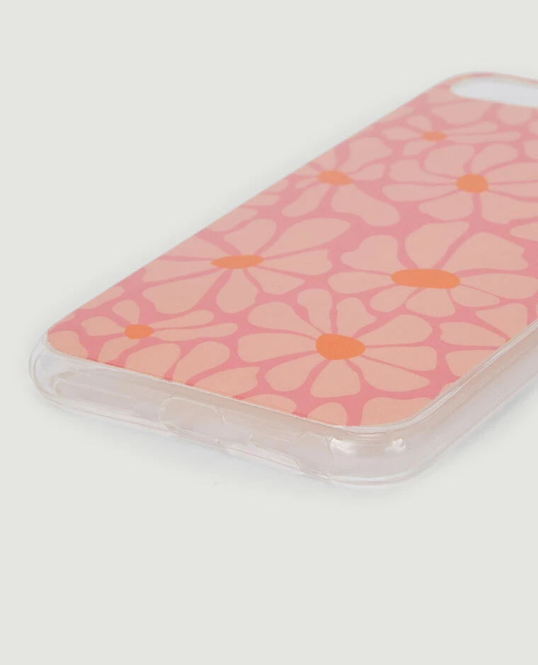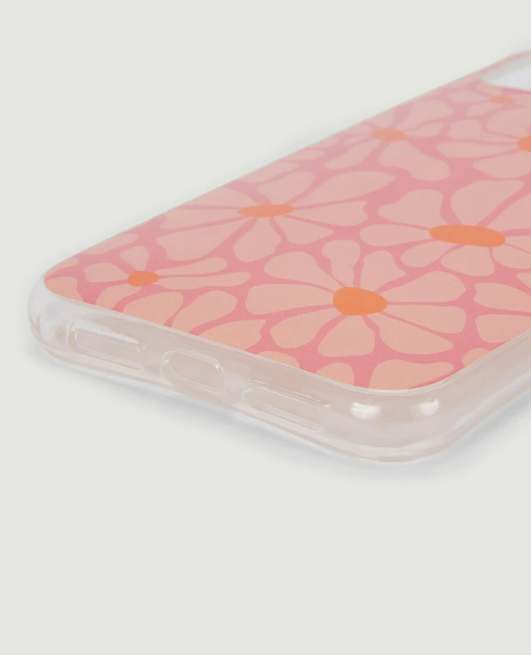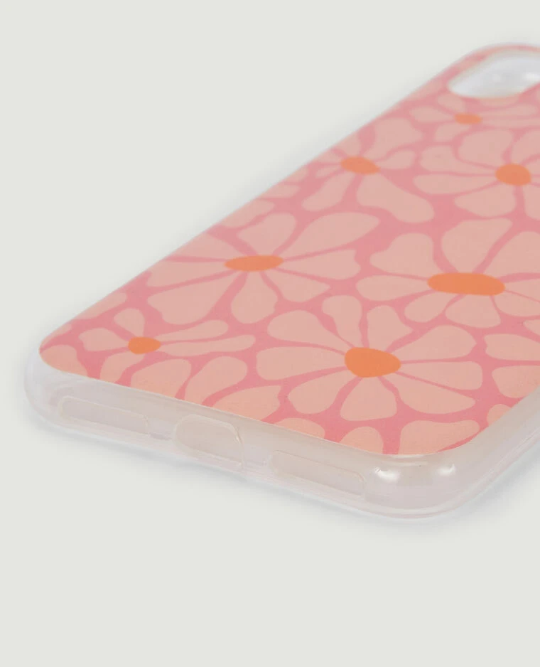 – Coque de tĂ©lĂ©phone semi-rigide rose avec fleurs.