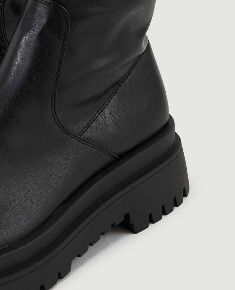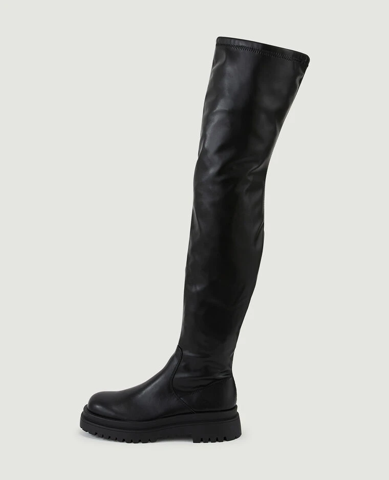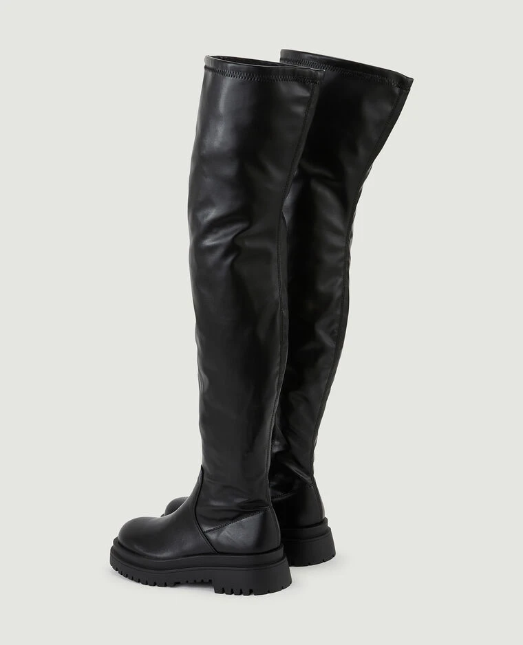 – Cuissardes en matière synthétique effet cuir lisse et souple.
