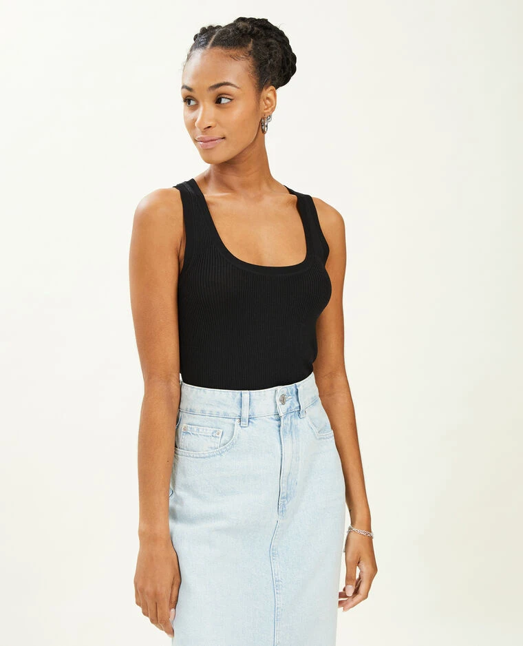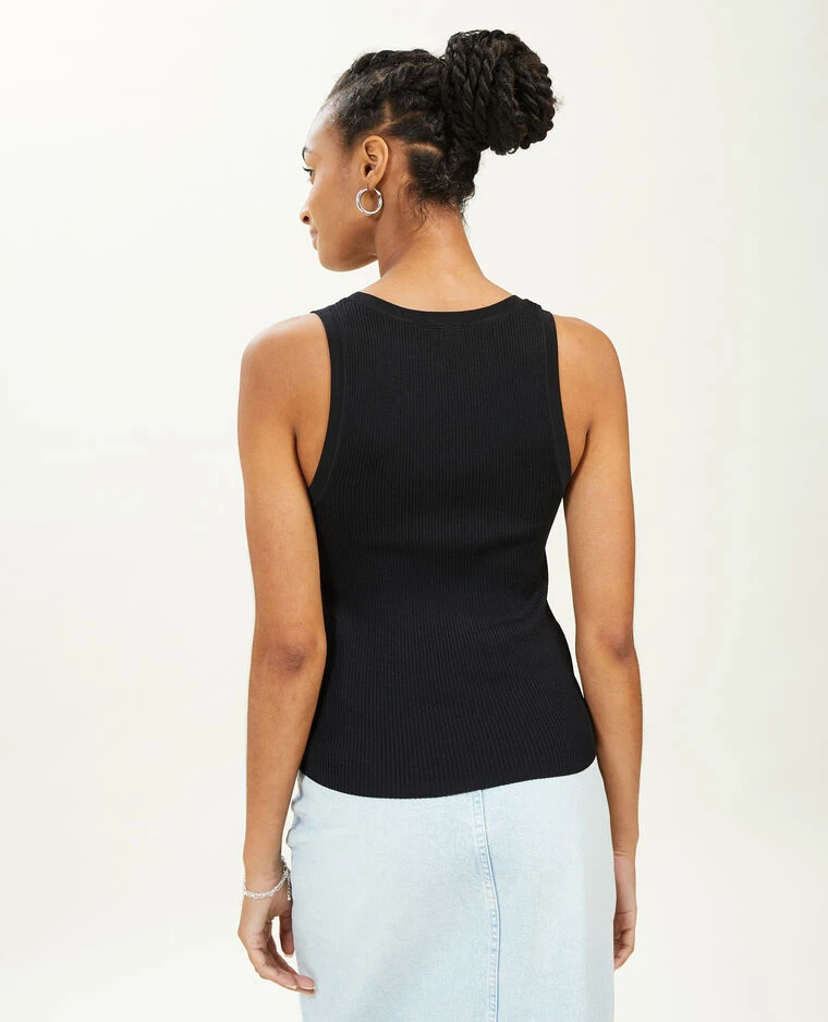 – Bord-côtes à l’encolure ronde et aux emmanchures.