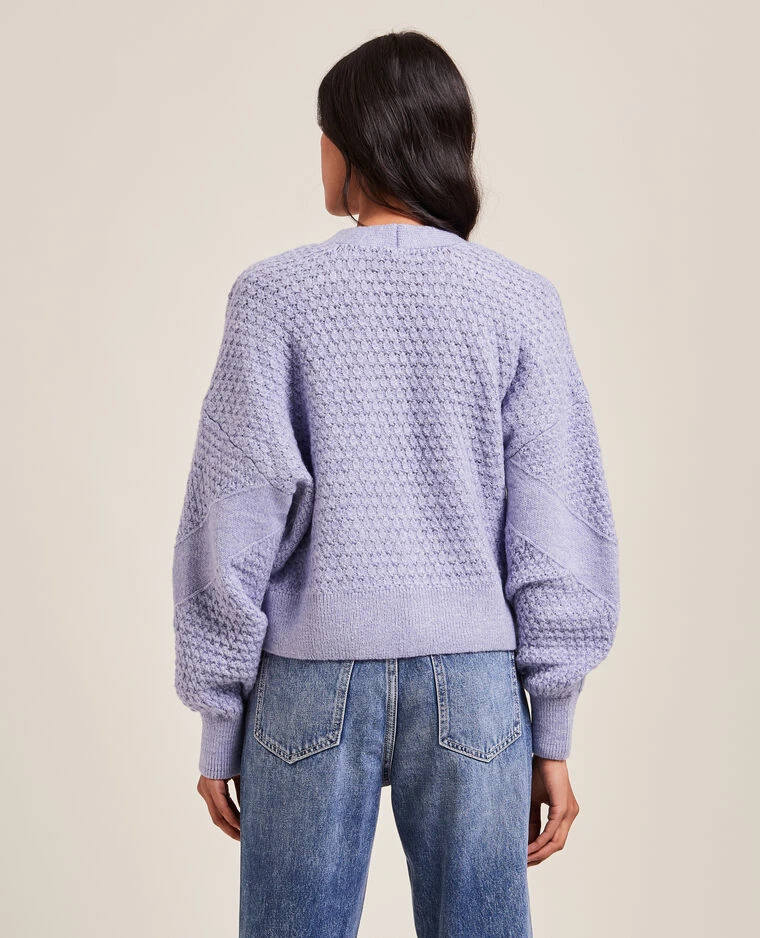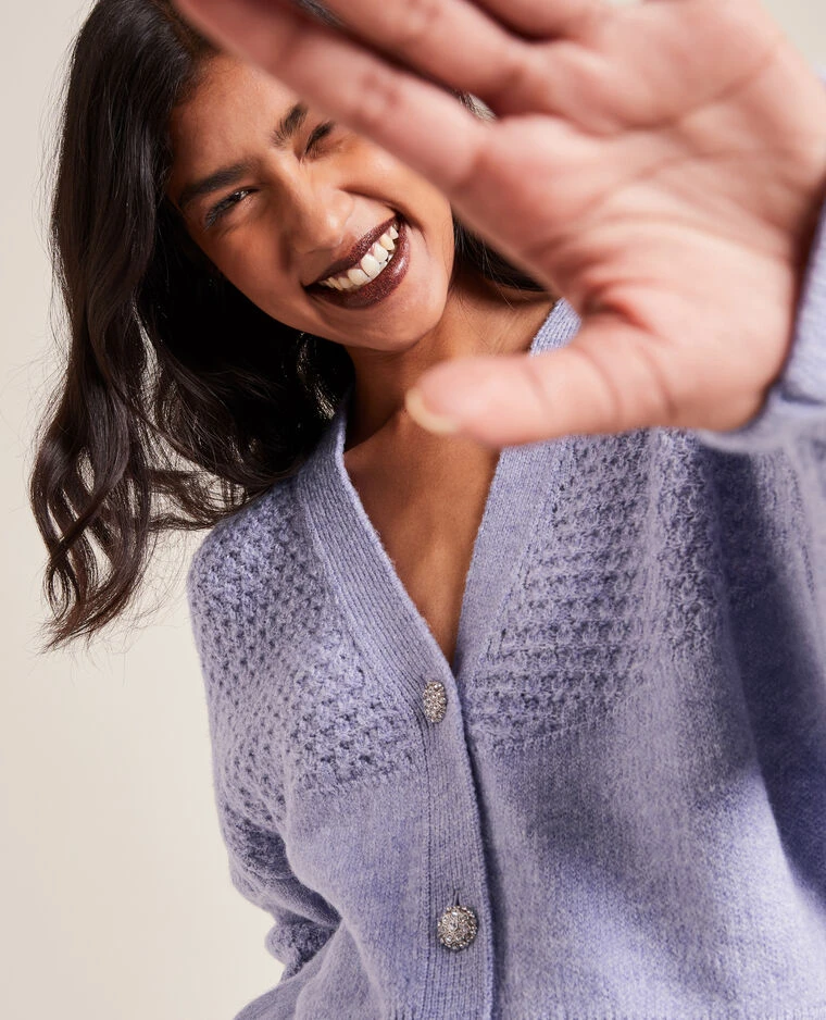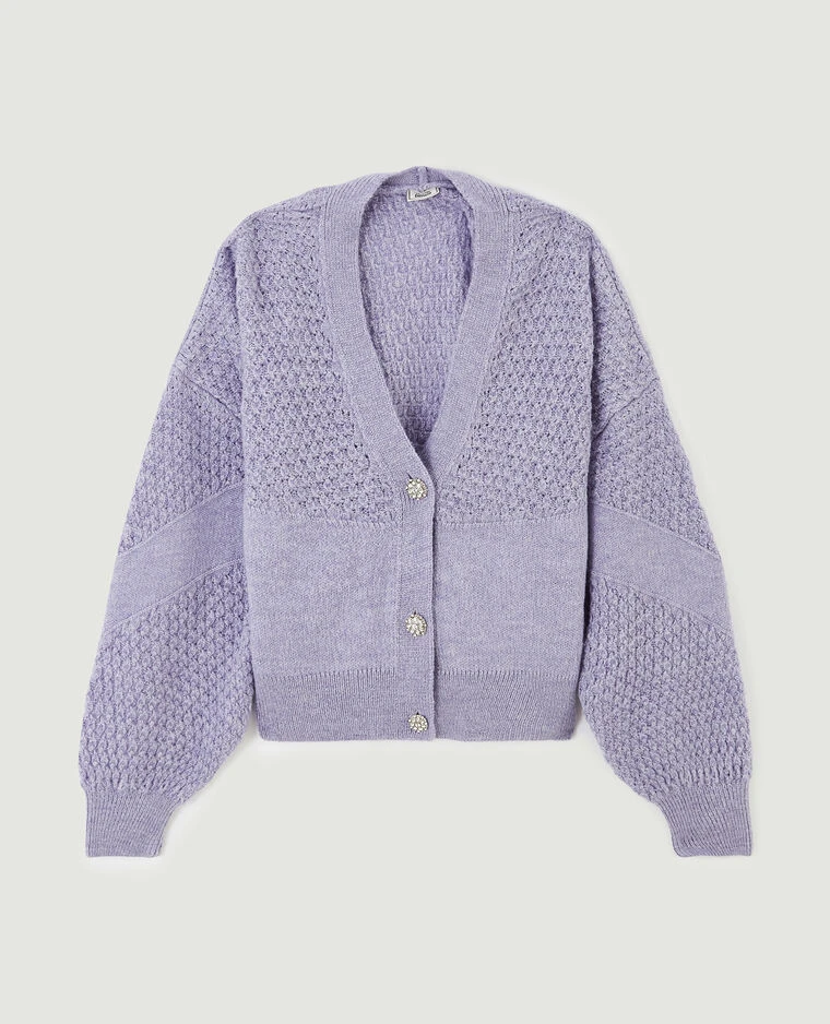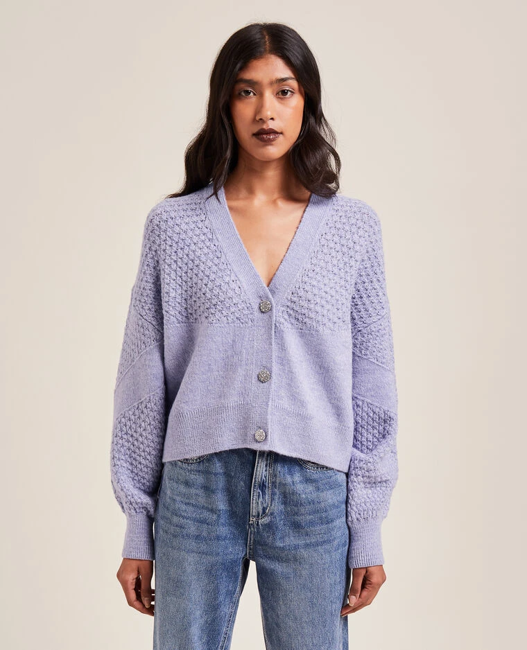 – Gilet en maille fantaisie lilas.