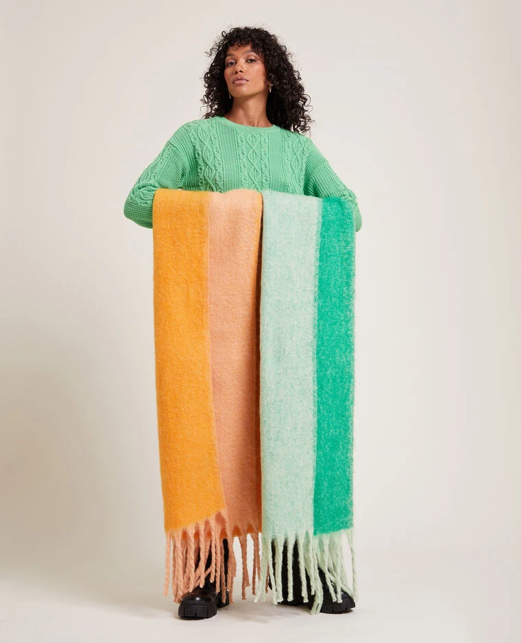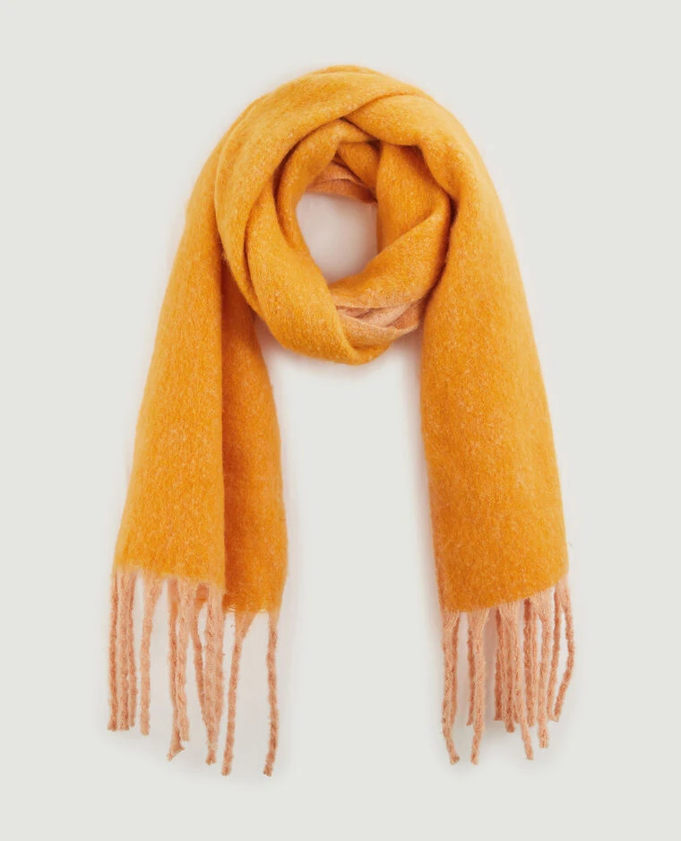 – Echarpe en maille douce orange.