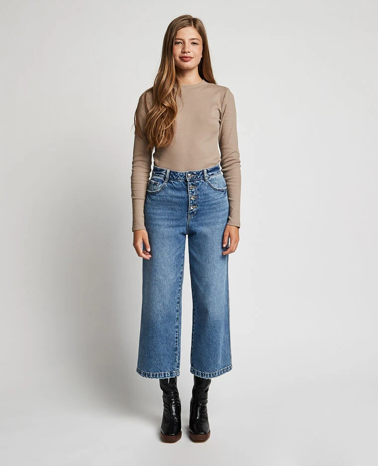 – Jean culotte noir Ă effet plis permanents.