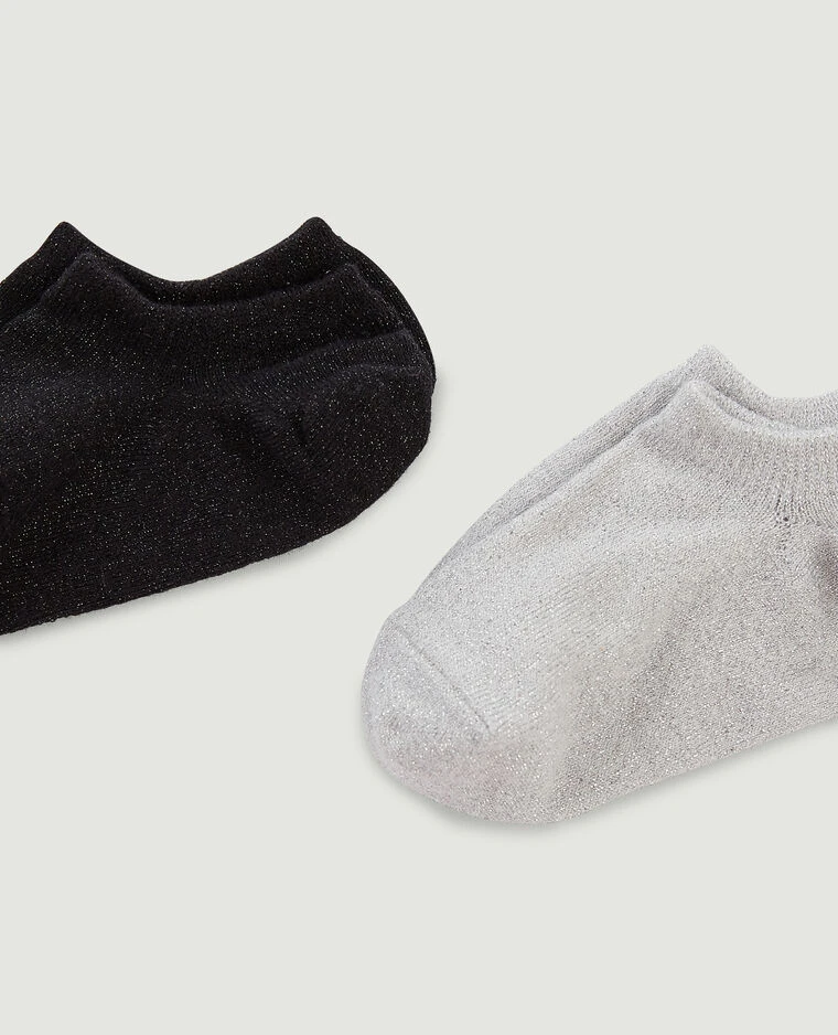 – Lot de 2 paires de chaussettes invisibles avec fils lurex : 1 argentée + 1 noire.