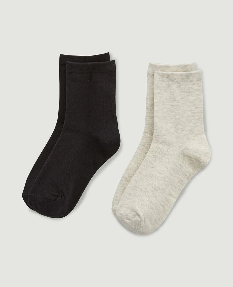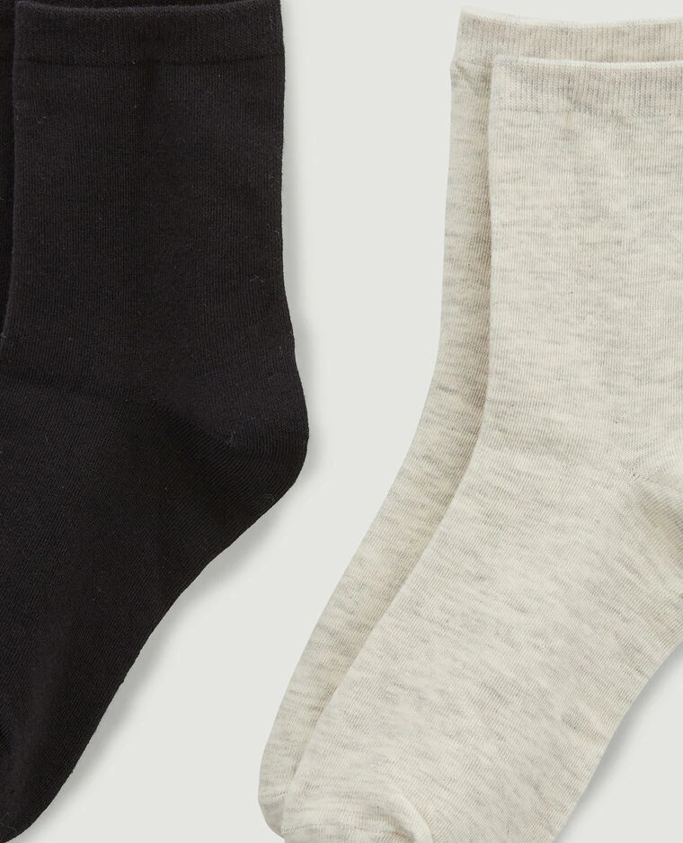– Lot de 2 paires de chaussettes : 1 beige chiné + 1 noir.