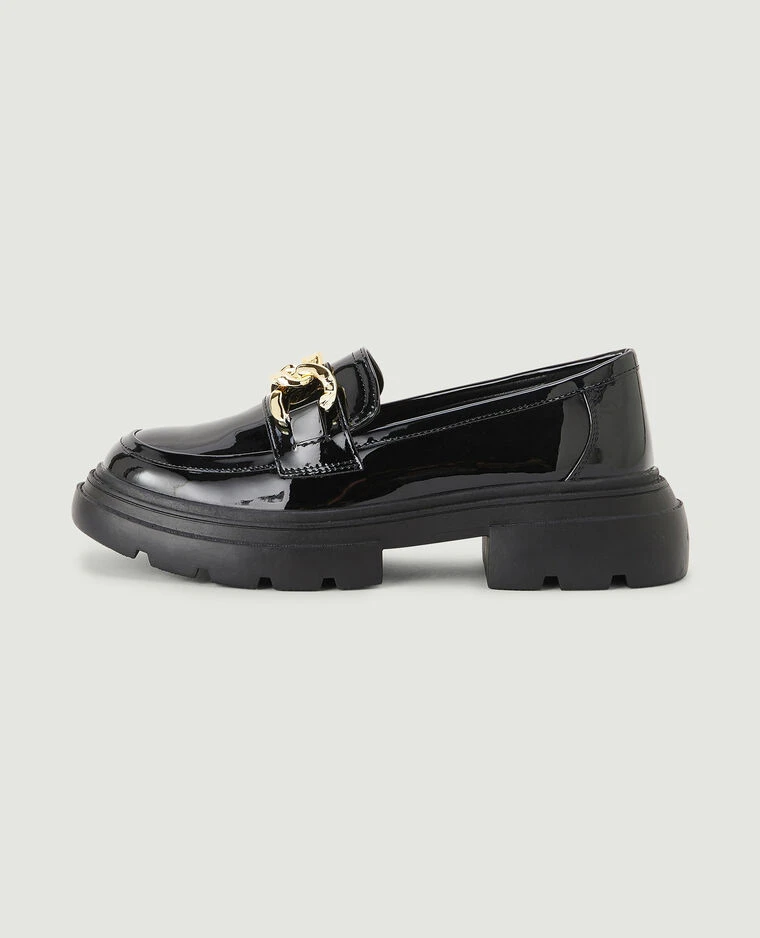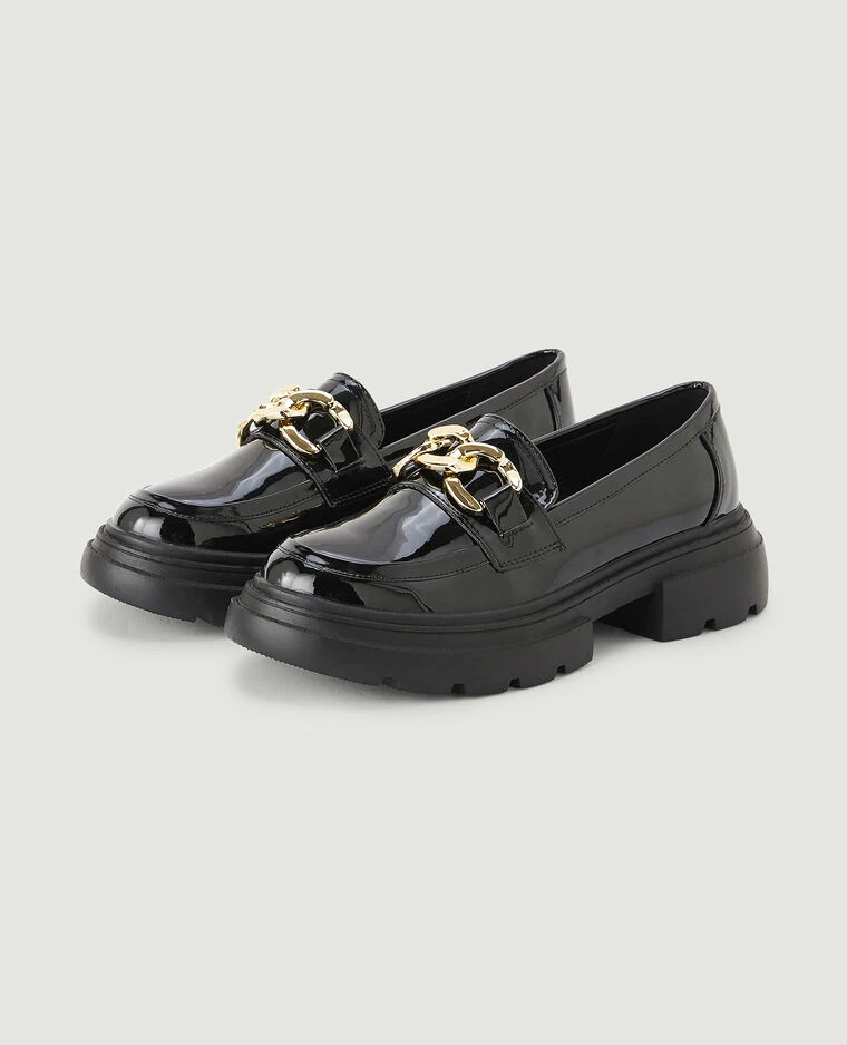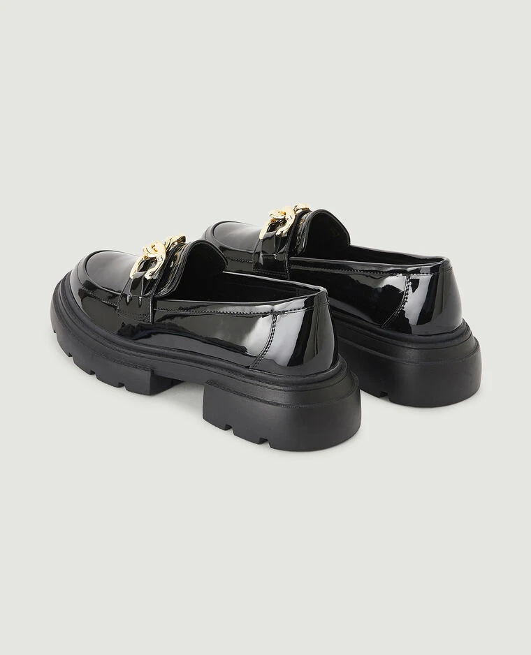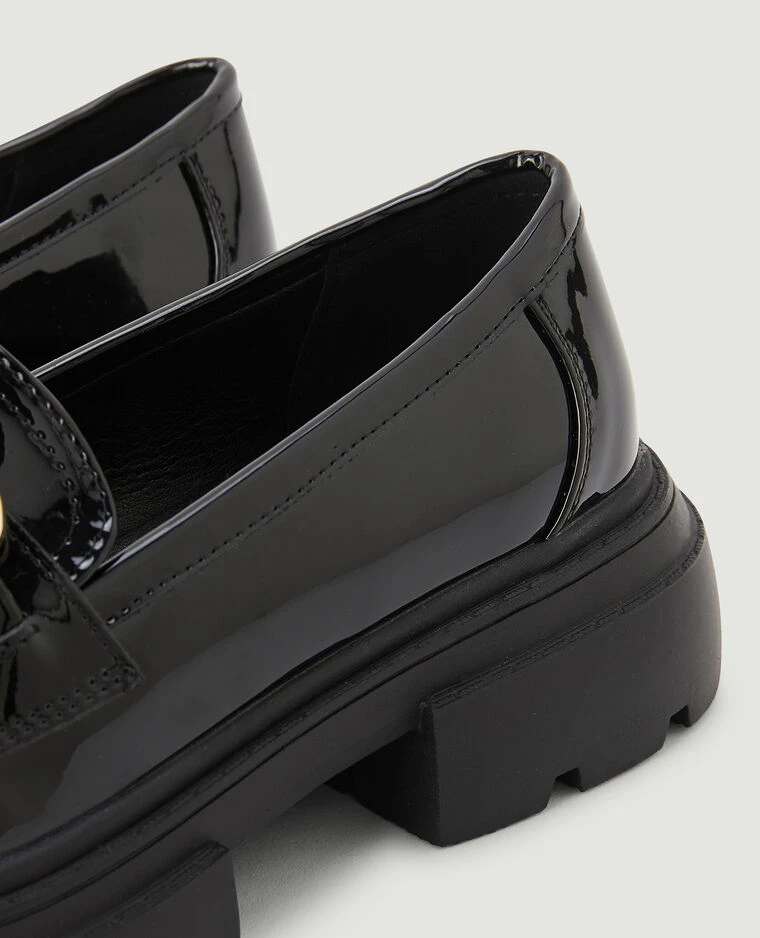 – Mocassins chunky noirs en matière synthétique effet cuir verni.
