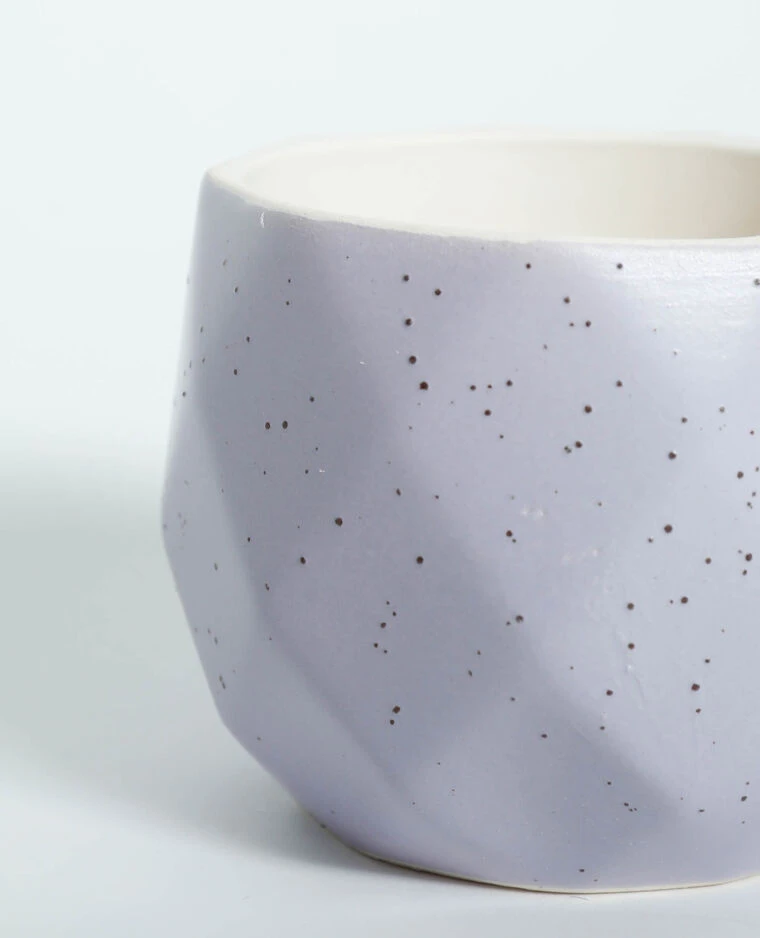 – Pot géométrique parme avec petits points.