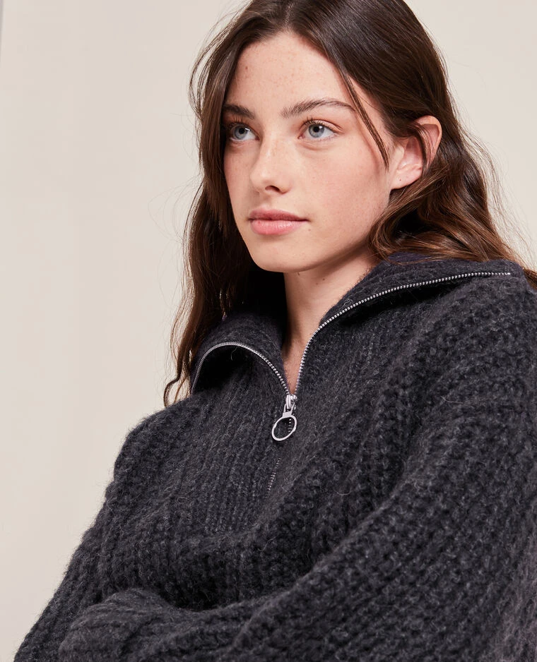 – Grand col camionneur avec zip et curseur en mĂ©tal couleur argent.