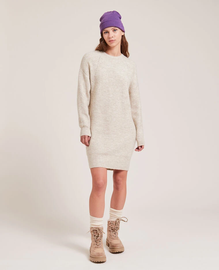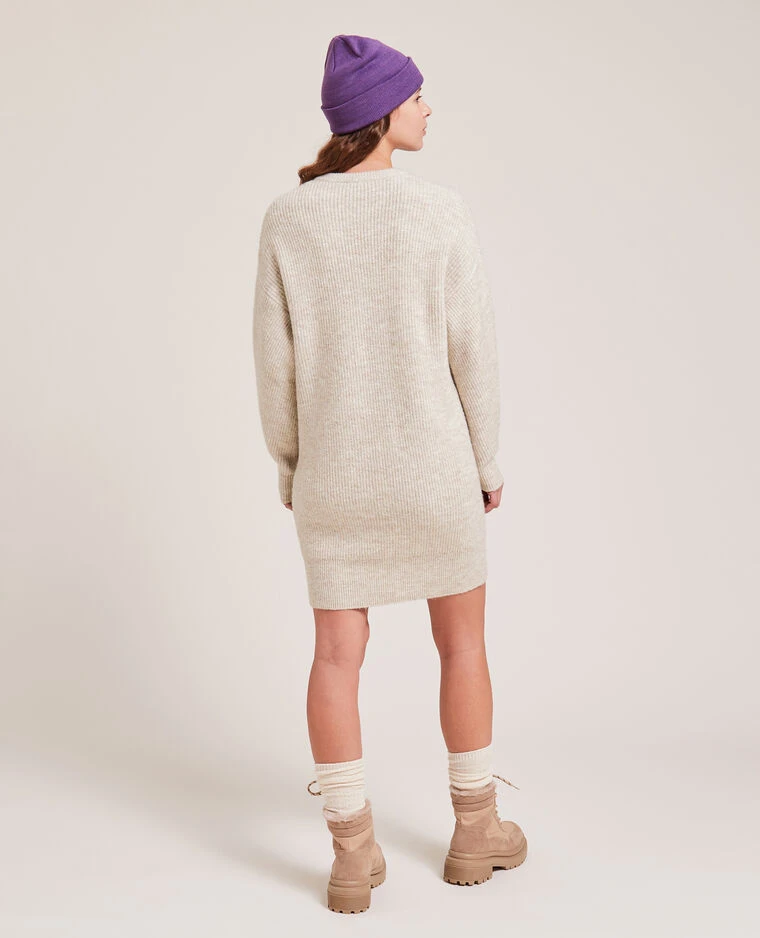 – Robe en maille beige chiné.