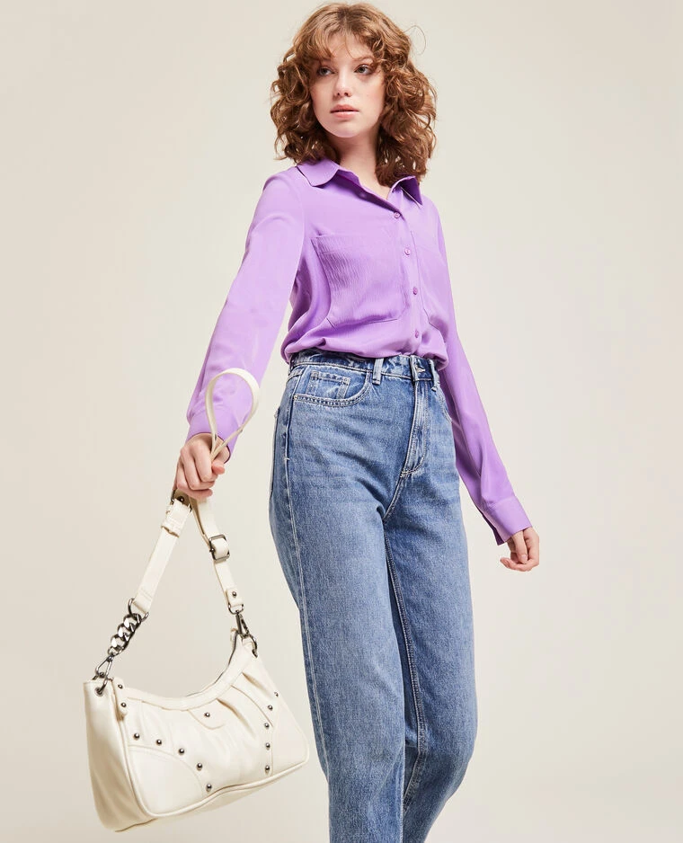 – Bandoulière réglable et amovible avec détail grosse chaine métallique à l’extrémité.