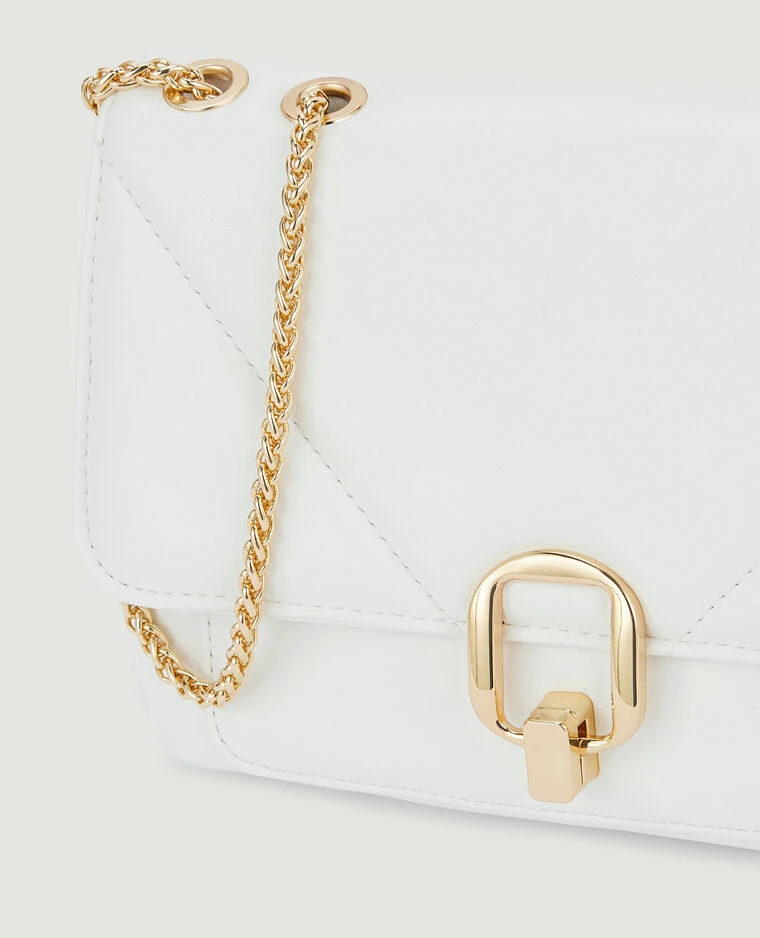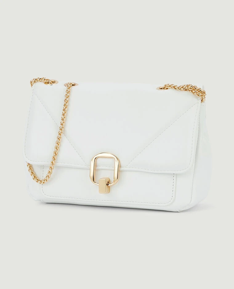 – Sac pochette en matière synthétique effet cuir lisse blanc cassé.