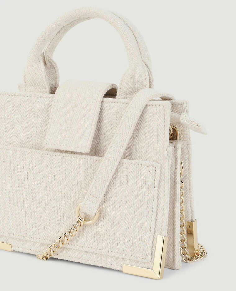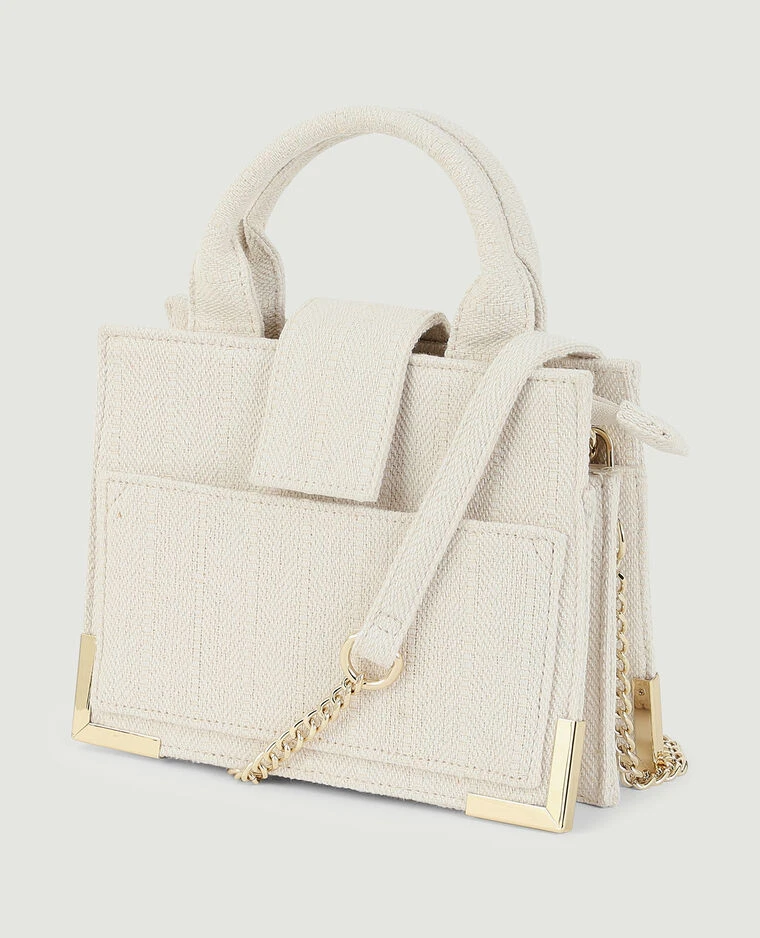 – Sac rigide carré en tissu reliefé effet lin beige.