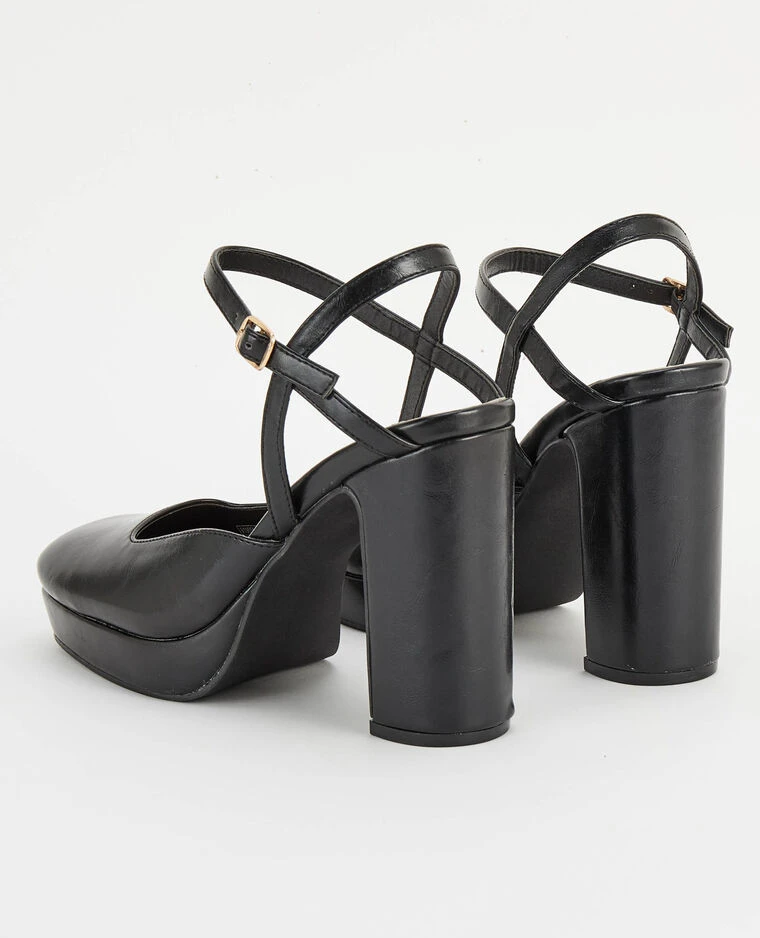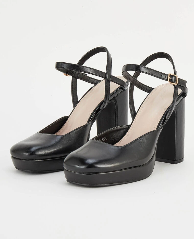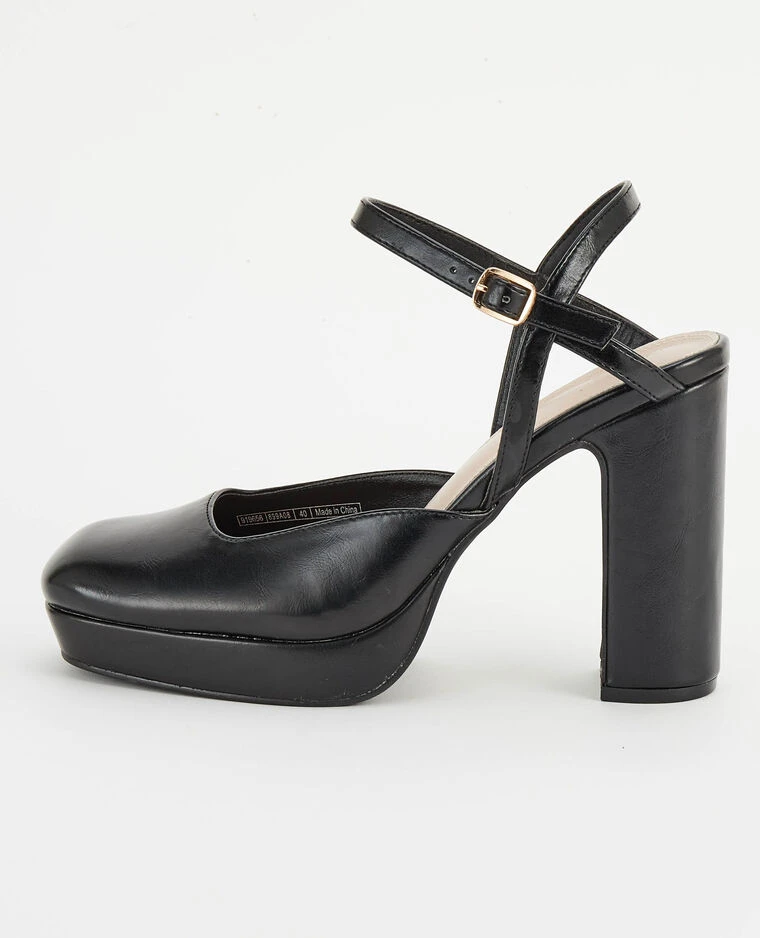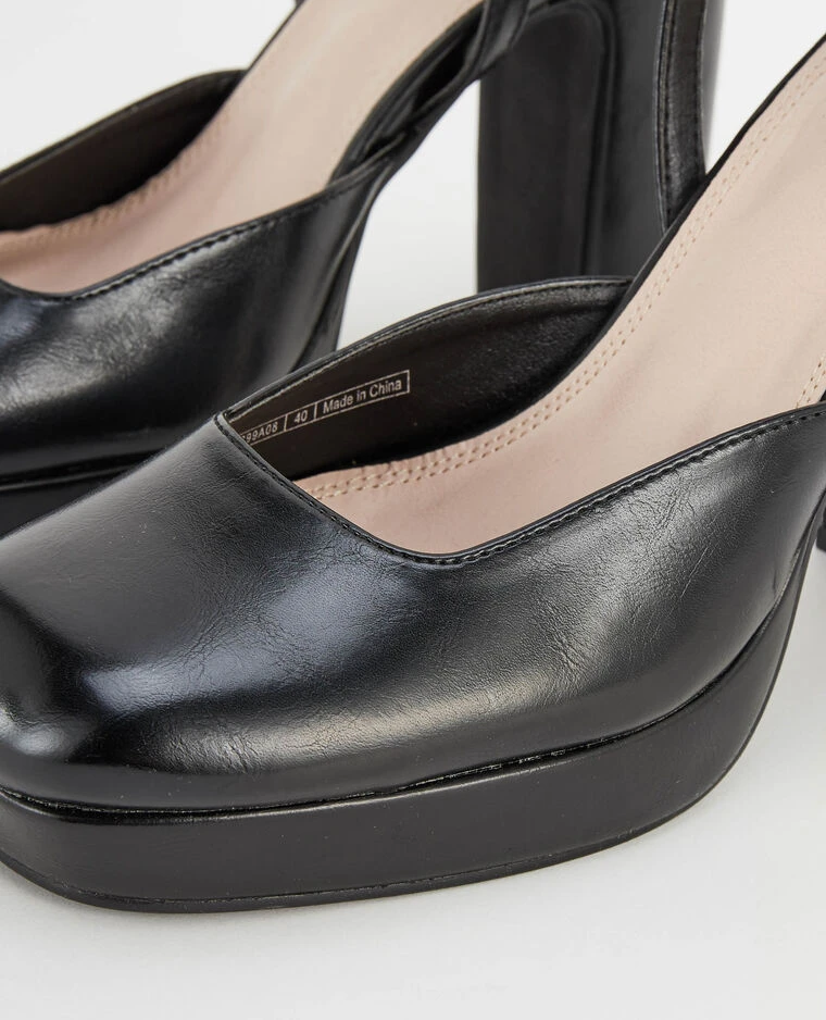 – Sandales babies en matière synthétique effet cuir lisse noir.