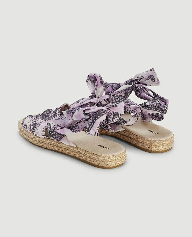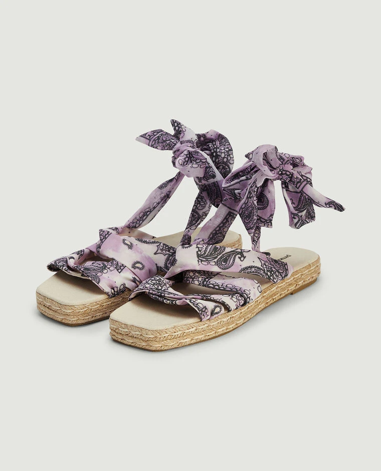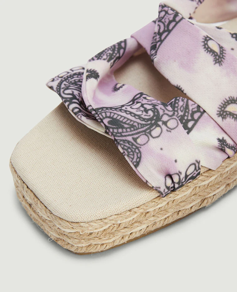 – Sandales plateforme avec lanières en tissu tie and dye lilas motif bandana.