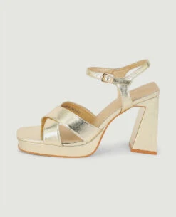 – Sandales ouvertes en matière synthétique effet cuir lisse doré.