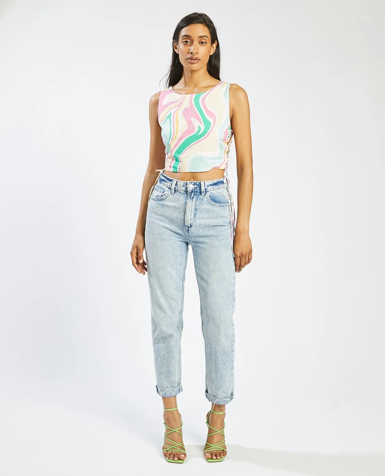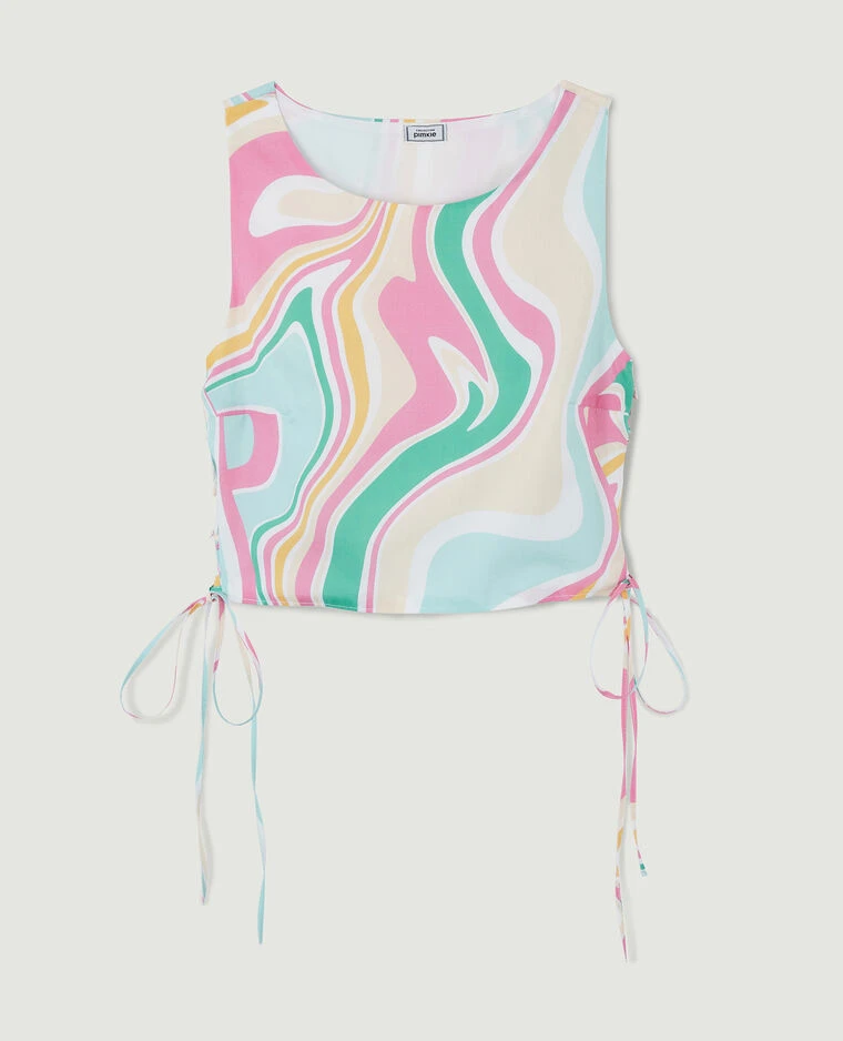 – Ouverture de chaque côté avec liens en tissu à nouer.