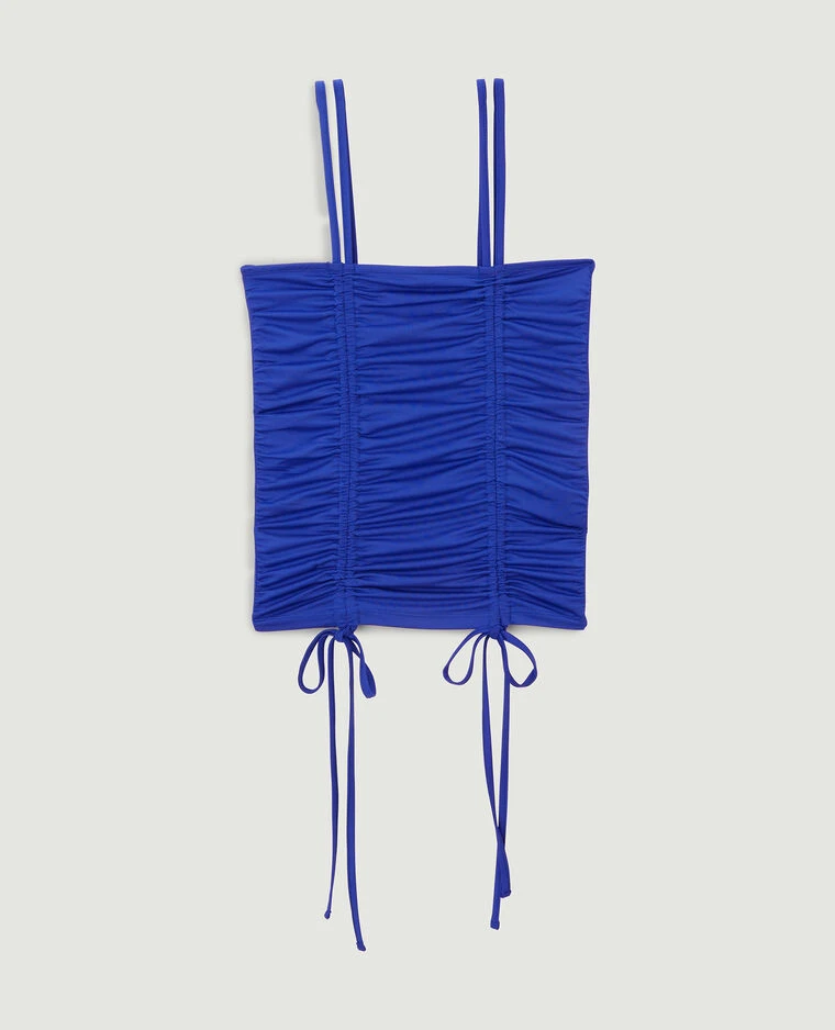 – Top court en maille bleu indigo.