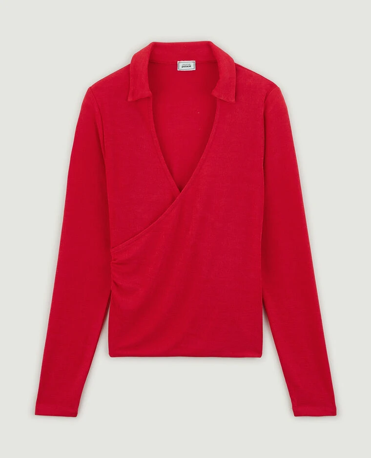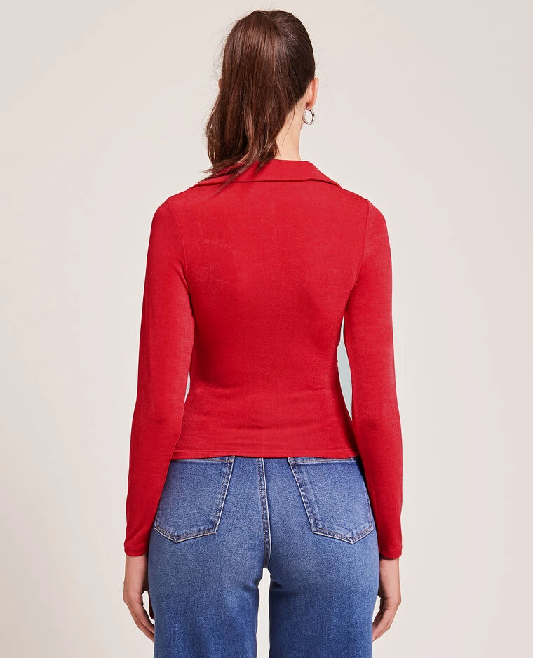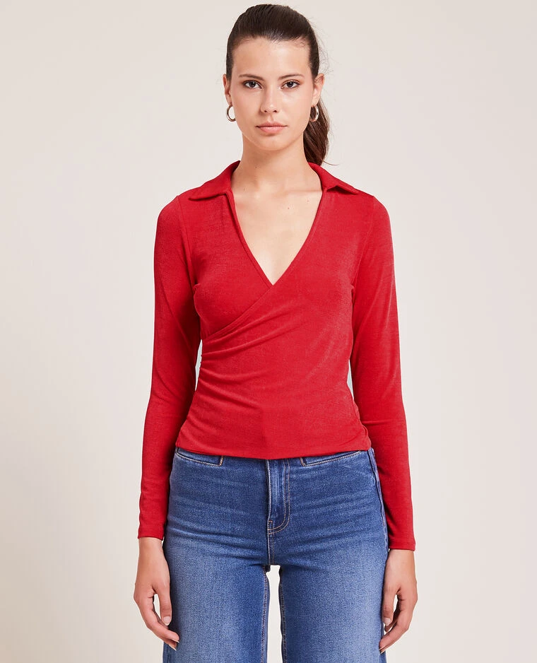 – Top cache-cœur rouge en maille fluide.