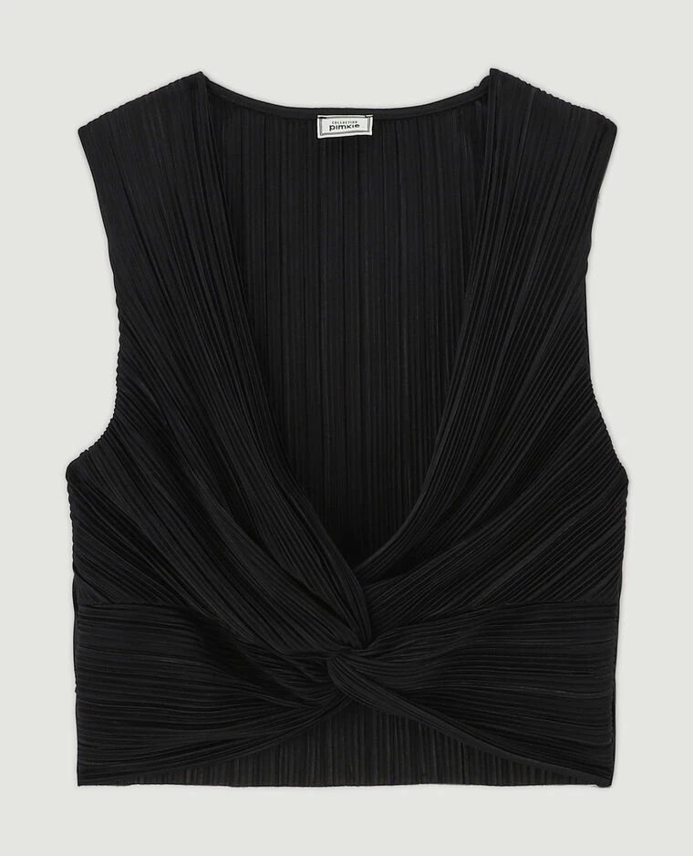 – Top court en tissu plissé noir.