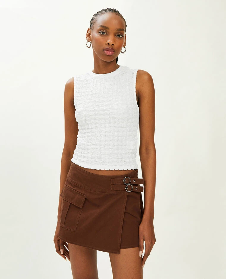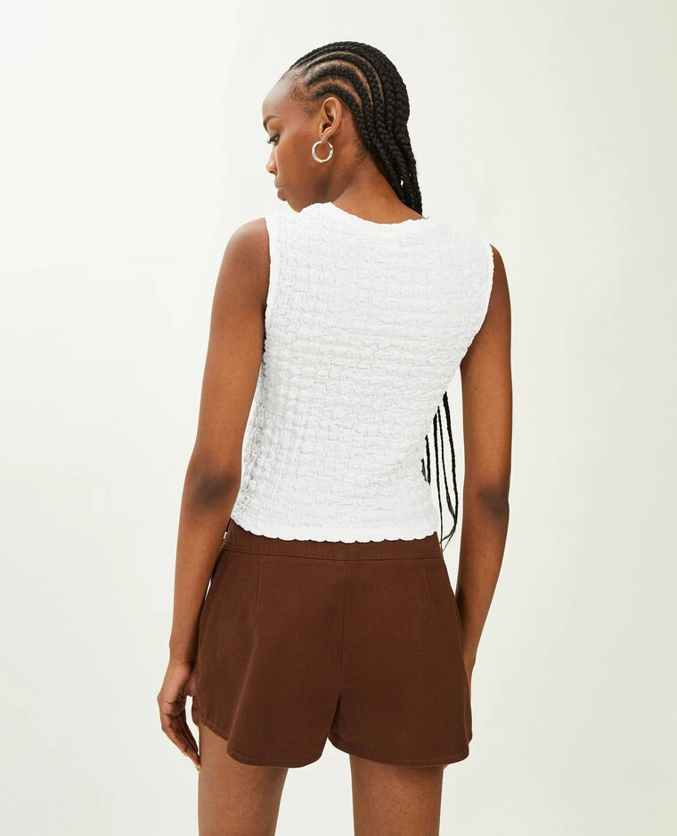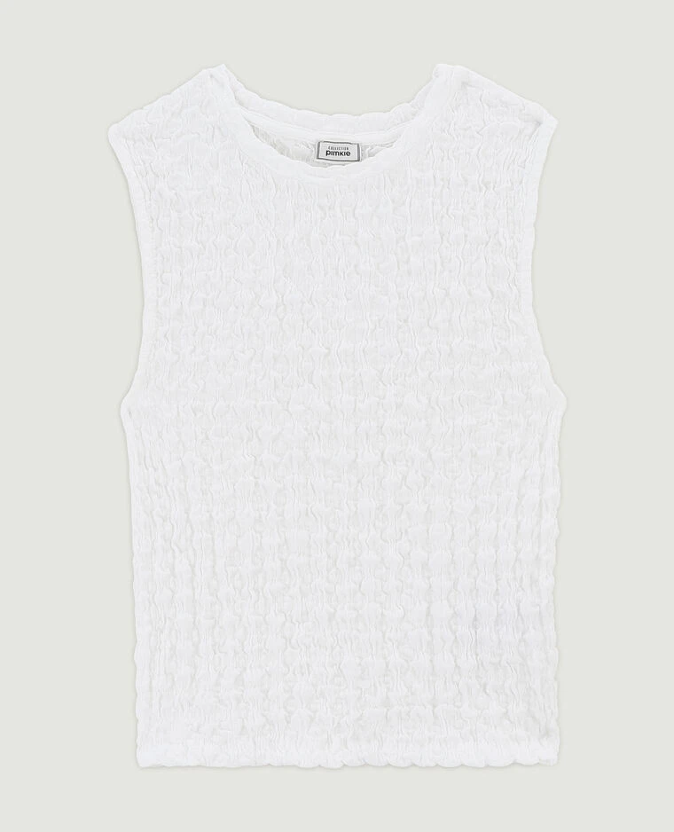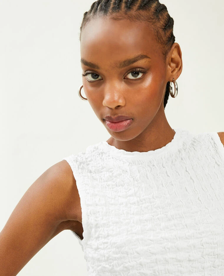 – Top court blanc en tissu extensible gaufré.