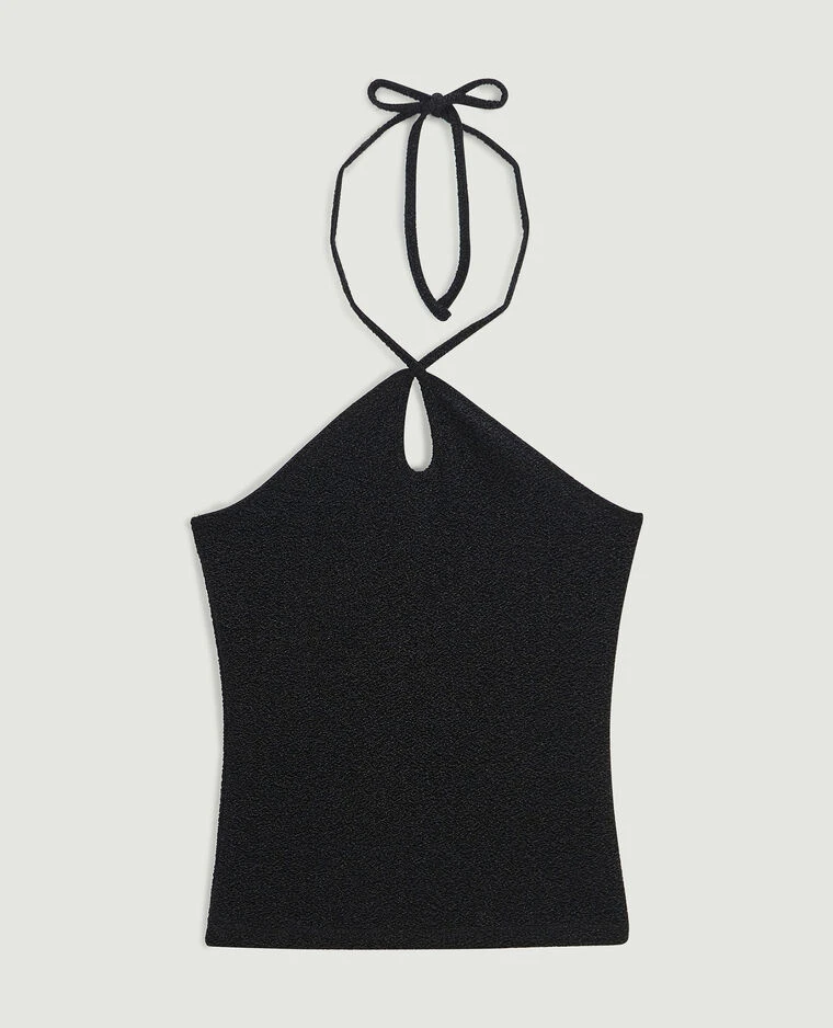 – Top dos-nu en maille lurex noire.