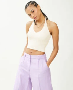 – Découpe goutte devant avec liens à nouer dans le cou.