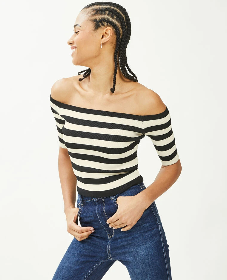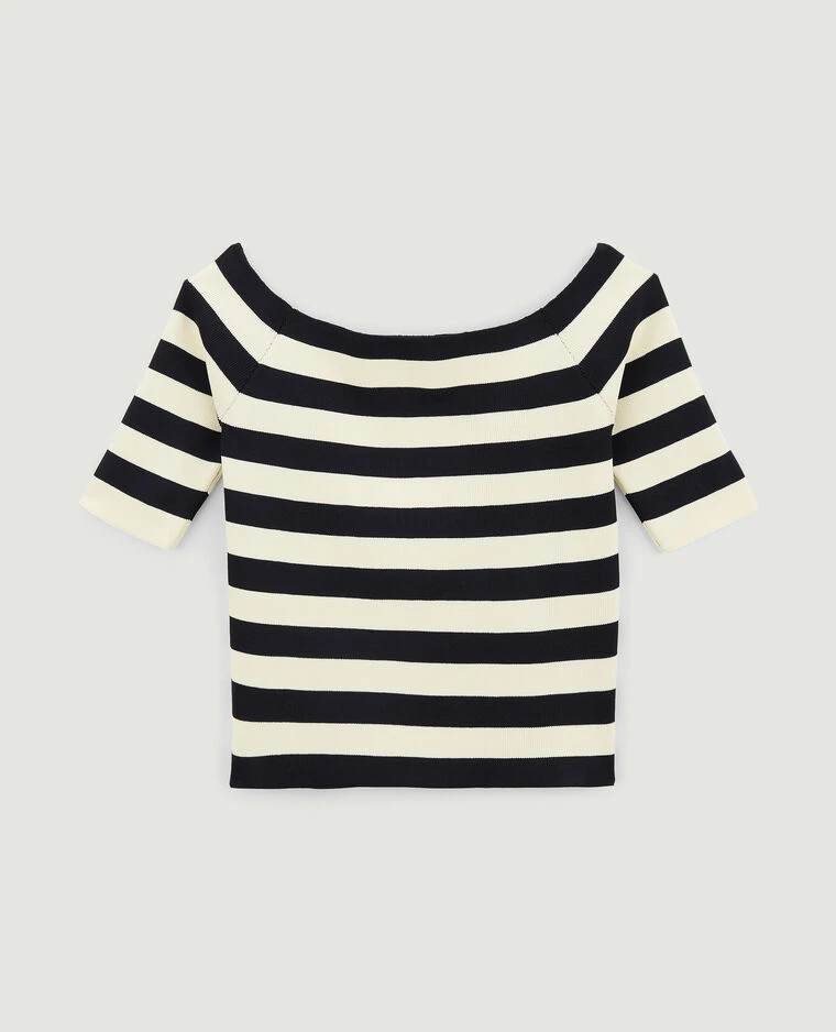 – Top court en maille extensible rayé noir et blanc.