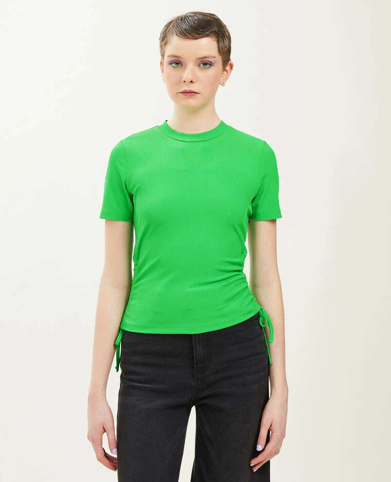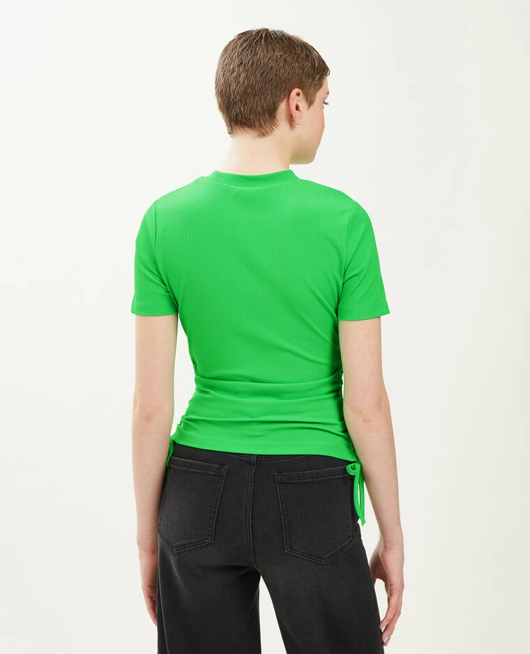 – Top vert en maille côtelée.