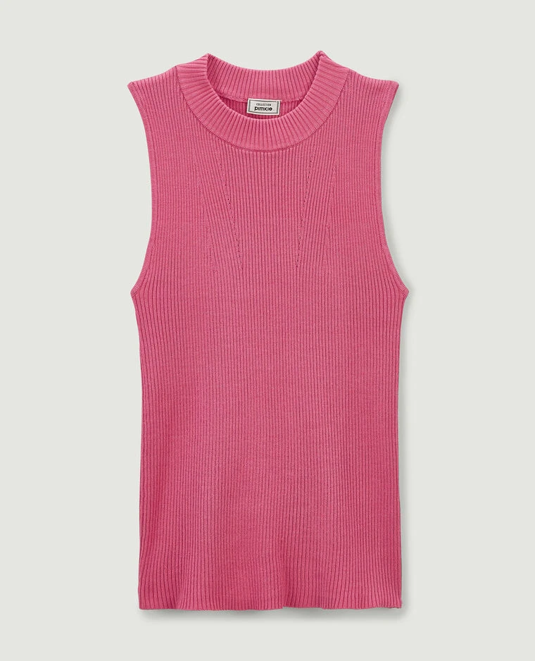 – Top sans manches en maille rose.